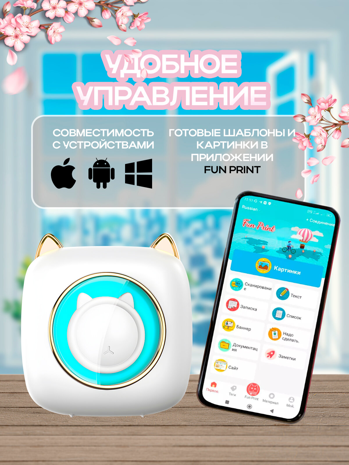 Портативный принтер "Кот золотистый", 15мм/сек, 200dpi, 1000мАч