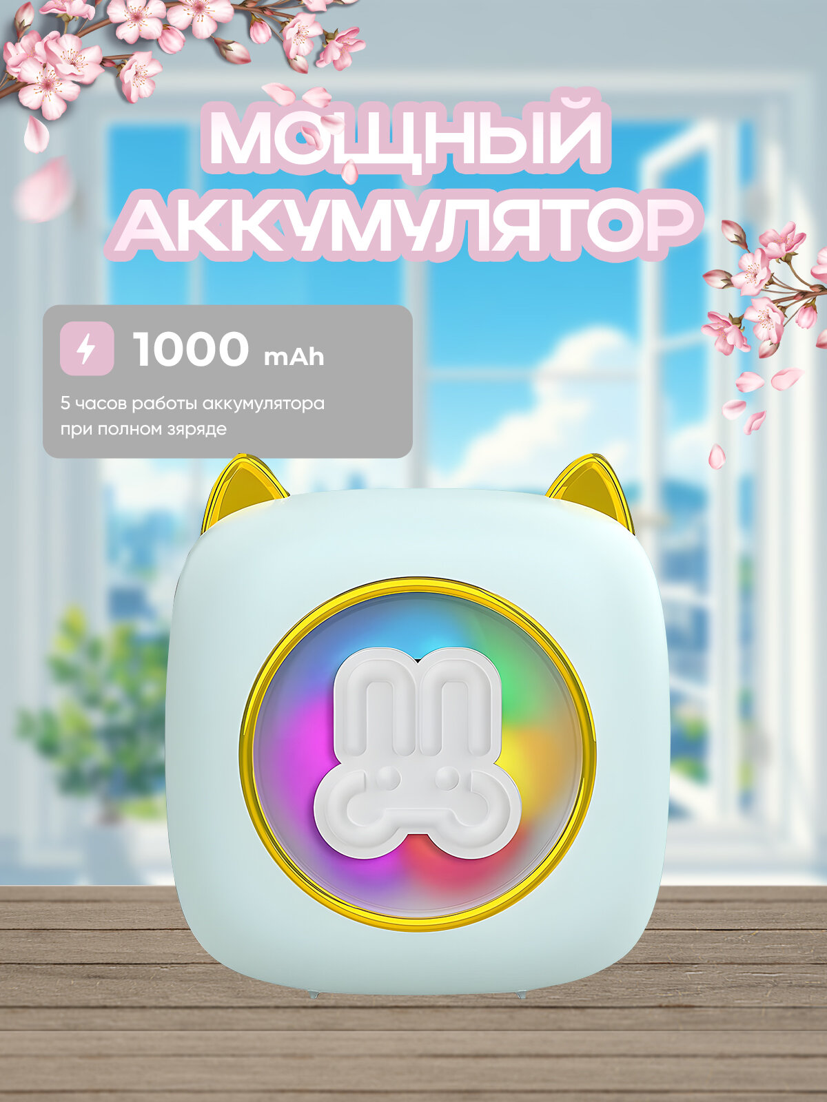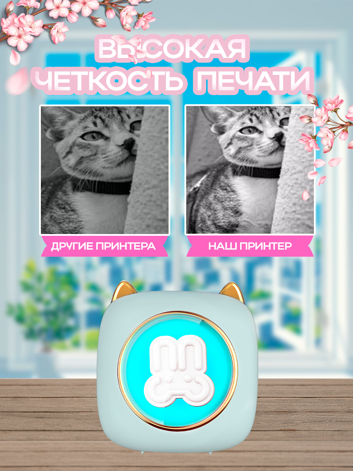 Портативный принтер "Заяц", голубой, мини принтер для телефона, принтер этикеток