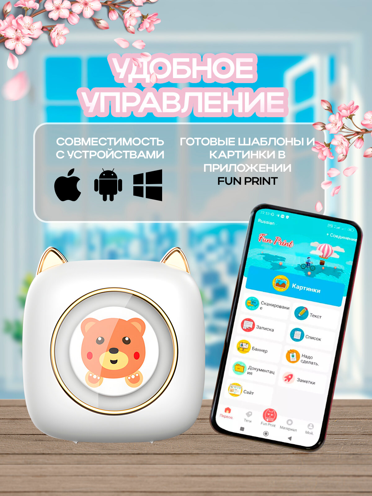Портативный принтер для детей "Мишка" интересное: