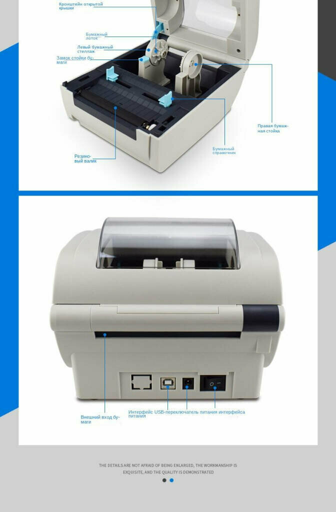 Термопринтер для этикеток, 4 дюйма, 4x6, USB, Bluetooth, ширина 40-110 мм от Shark-Shop интересное: