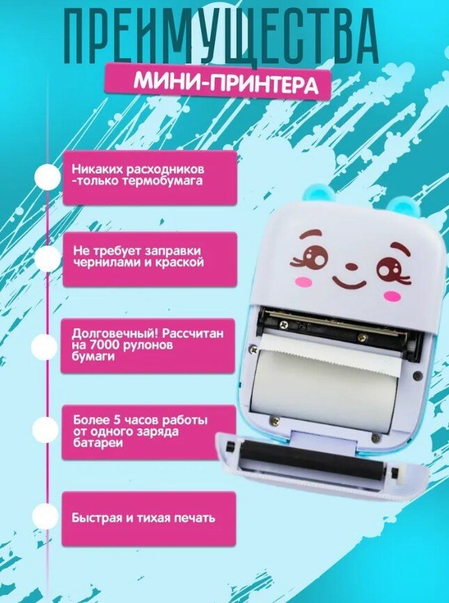 Детский мини термопринтер голубой интересное: