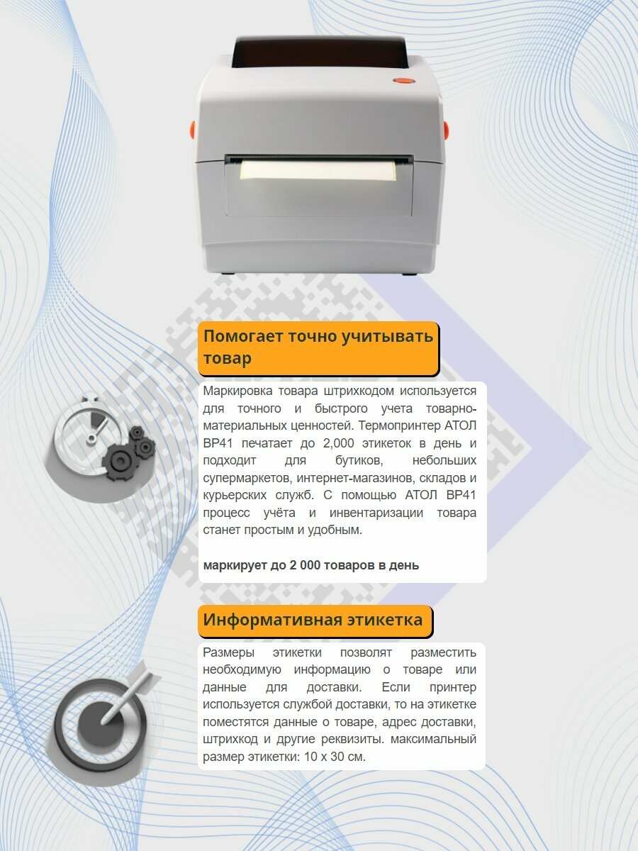 Принтер для чеков/наклеек АТОЛ BP41 интересное: