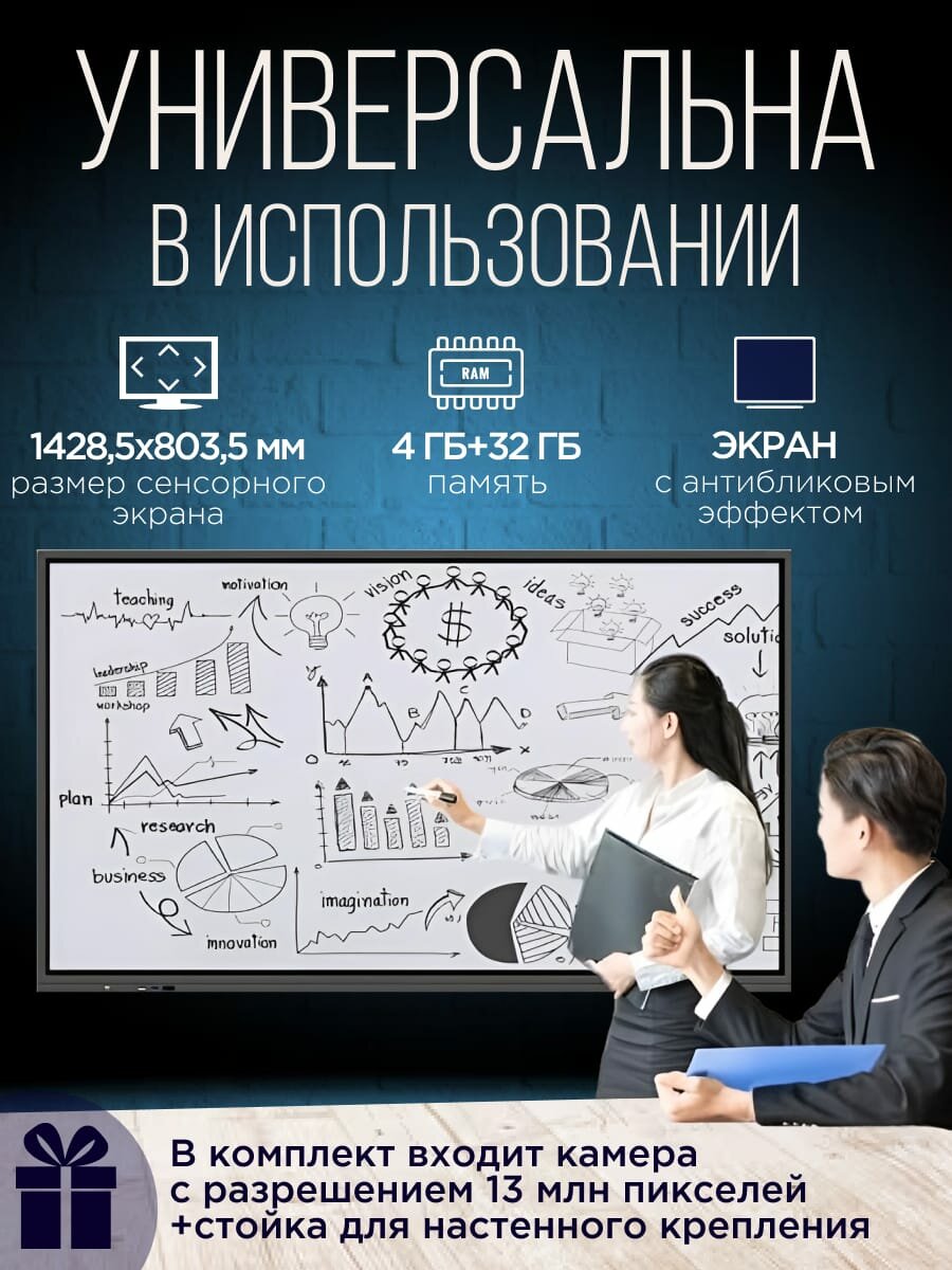 Интерактивная панель SK-65 Android 11 3840x2160 UHD 4/32 интересное: