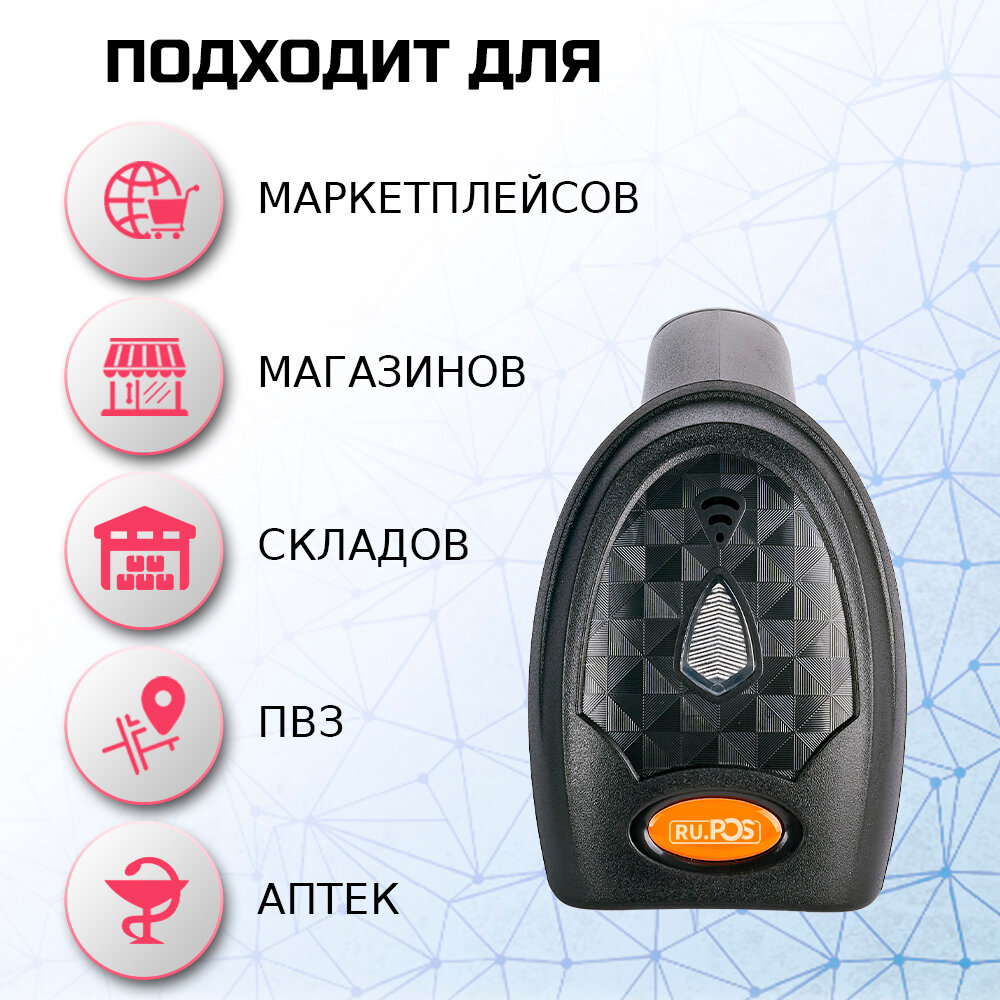 Беспроводной сканер штрих-кода МойPOS MSC-9516W2D, арт. 4534, 2D, черный, без подставки Cradle