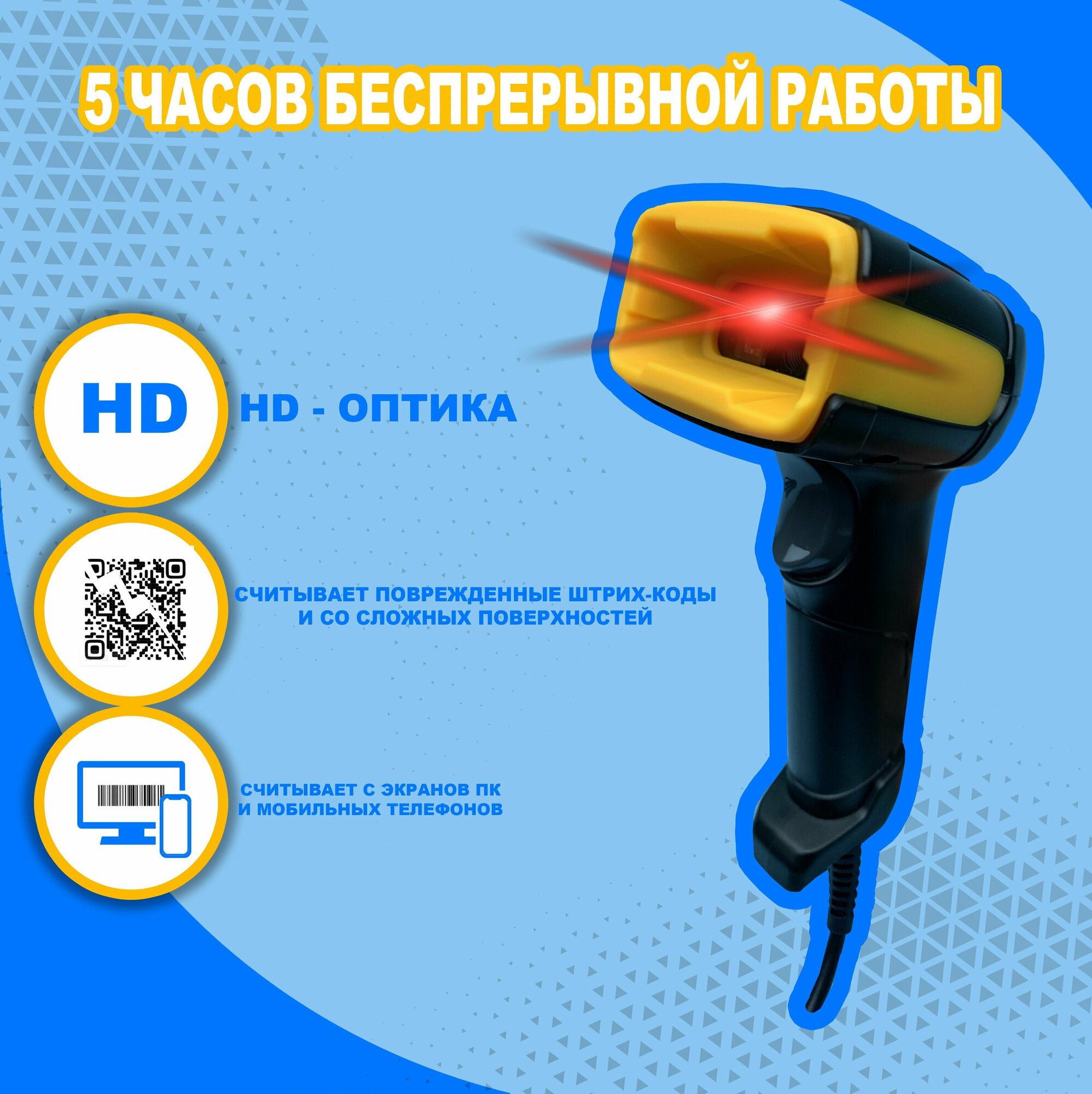 Сканер штрих кода 2D - Проводной (Честный знак, 1С, ПВЗ)