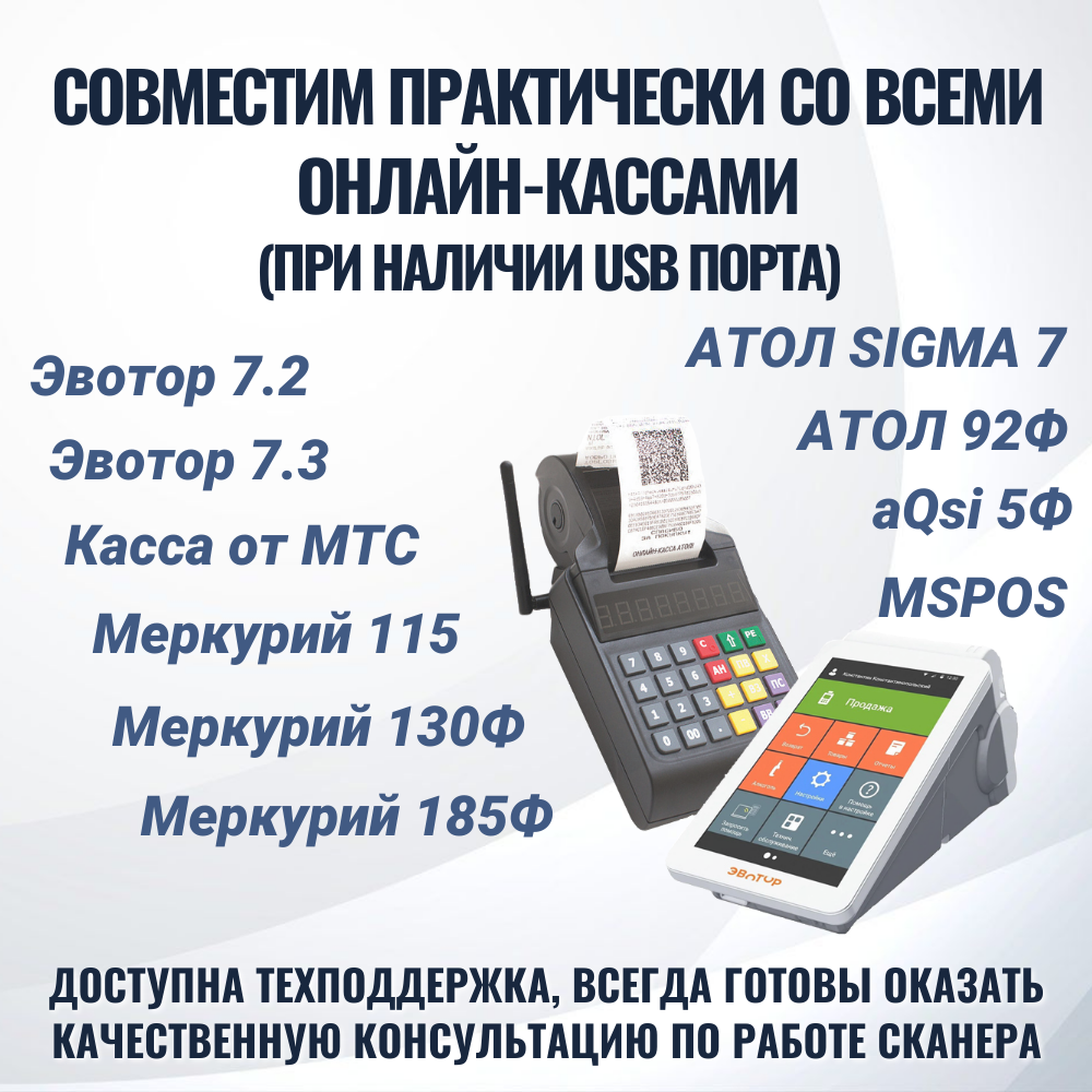 Беспроводной сканер штрих кода для ПВЗ, магазина, маркировки Честный знак ЕГАИС Эвотор Атол Меркурий для QR 1D 2D штрихкодов интересное: