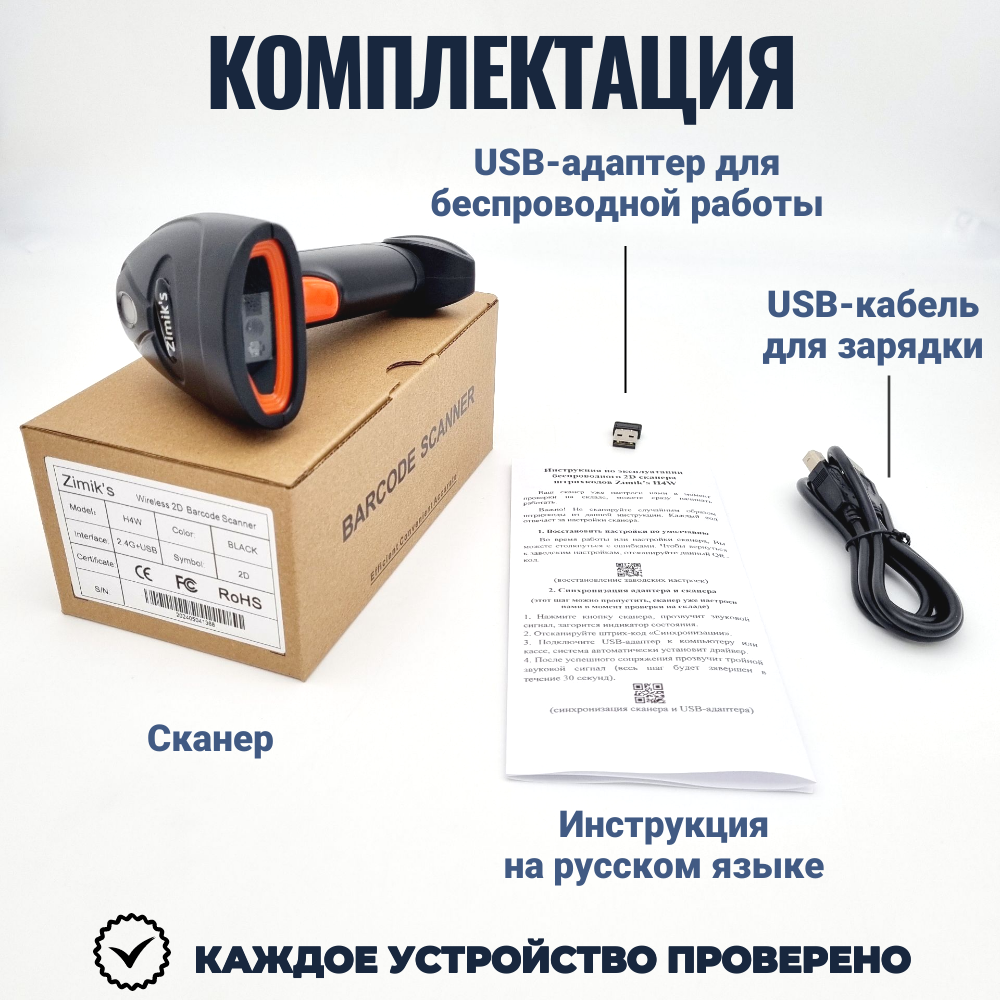 | Комплектация | Сканер штрихкодов 2D, USB-адаптер, USB-кабель для зарядки, инструкция на русском языке |