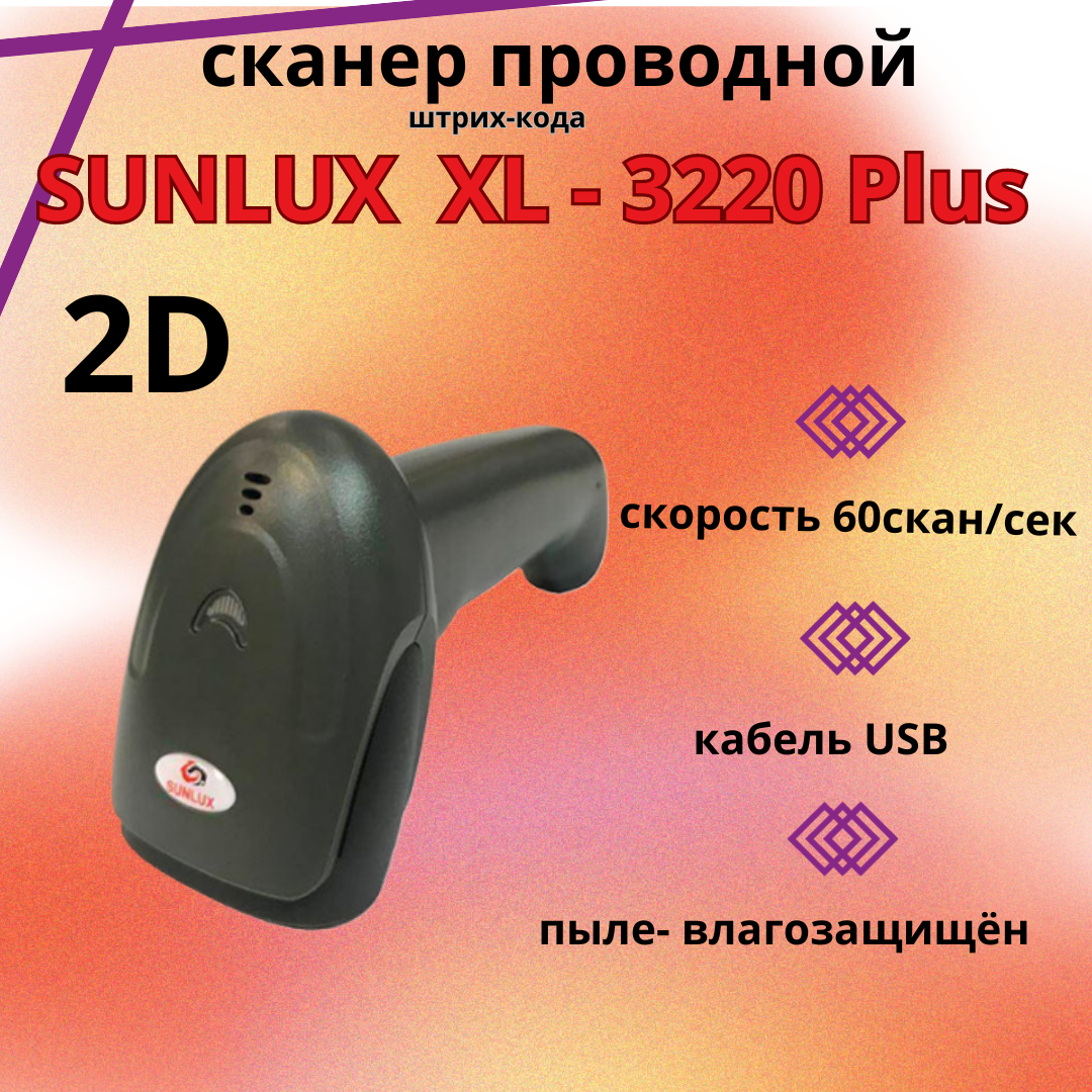 Сканер SUNLUX XL-3220Plus (USB cable)(2D, Честный знак) интересное: