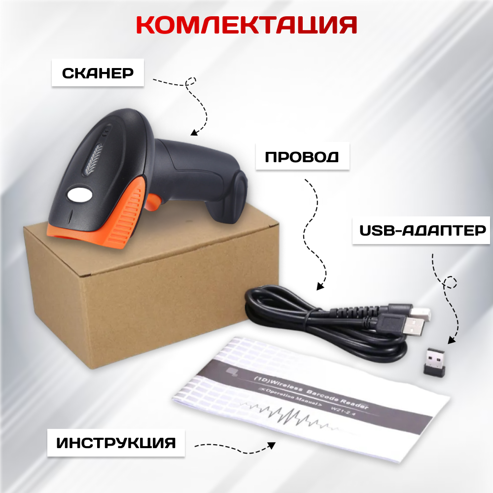 | Комплектация | Сканер штрихкодов, зарядный USB кабель, USB-адаптер, инструкция на русском языке |