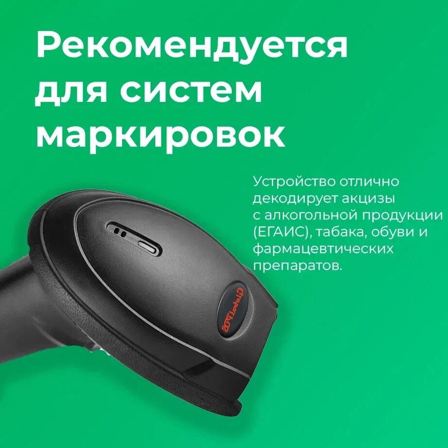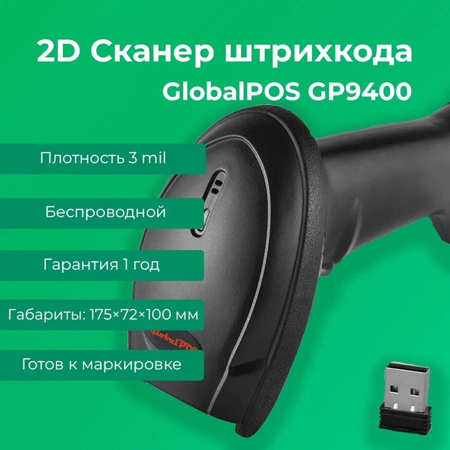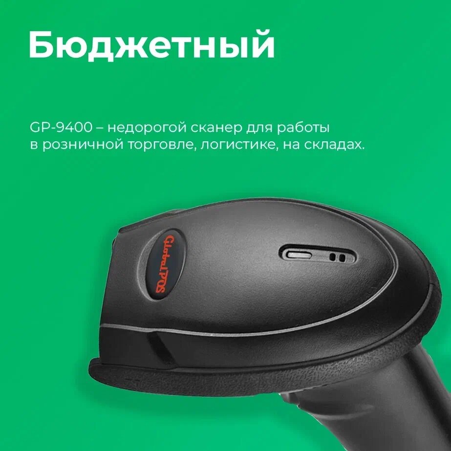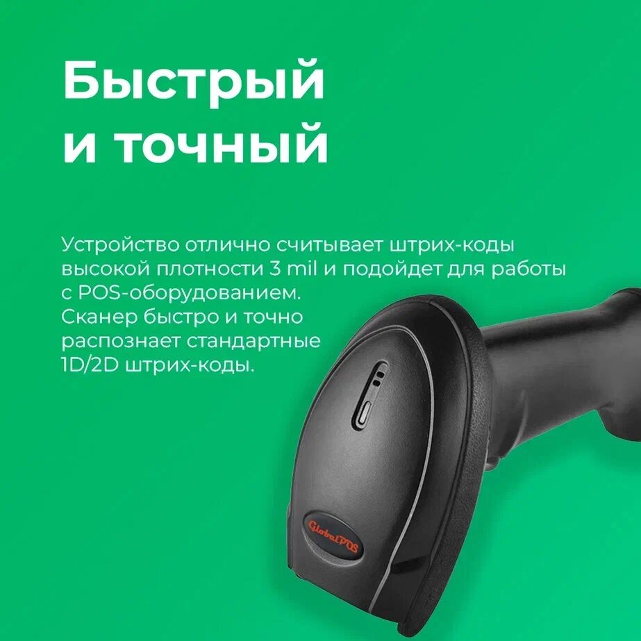 Сканер штрихкода GlobalPOS GP9400 2D, беспроводной, Bluetooth, USB интересное: