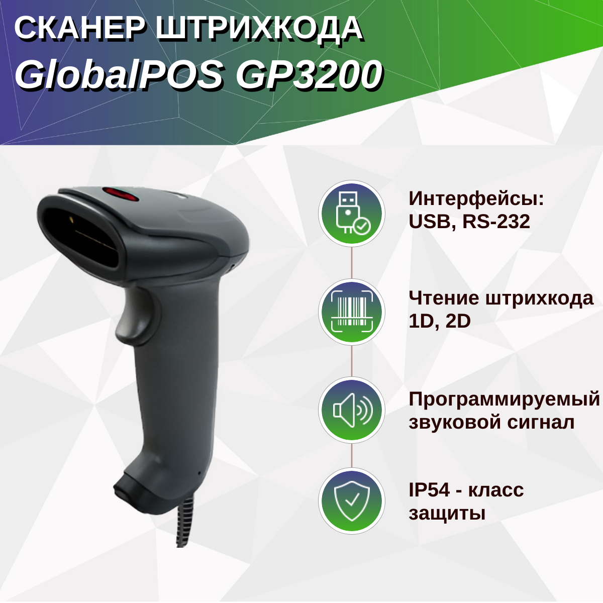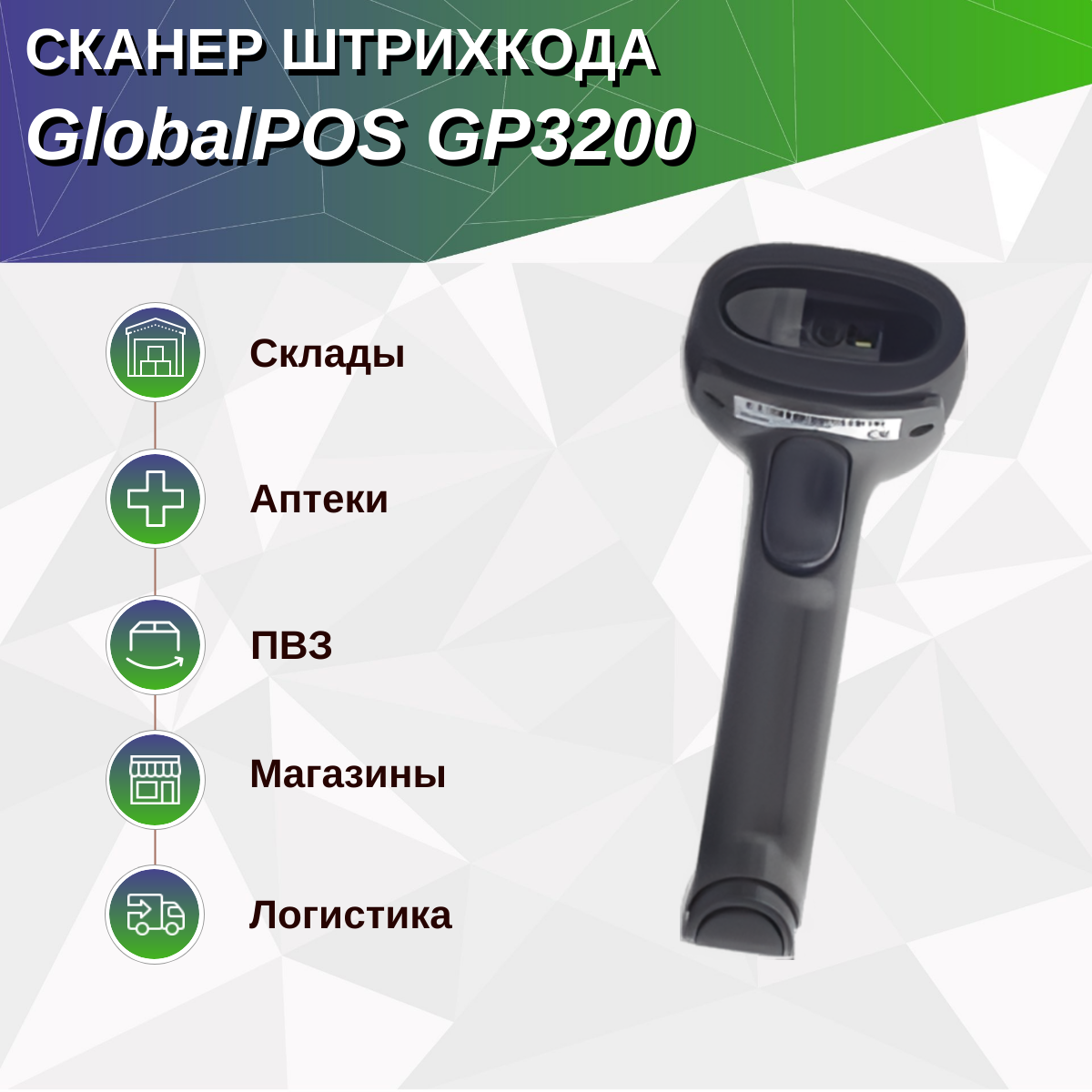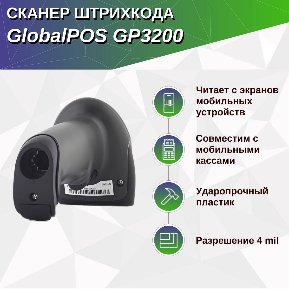 Сканер штрихкода GlobalPOS GP3200 2D, USB, черный интересное: