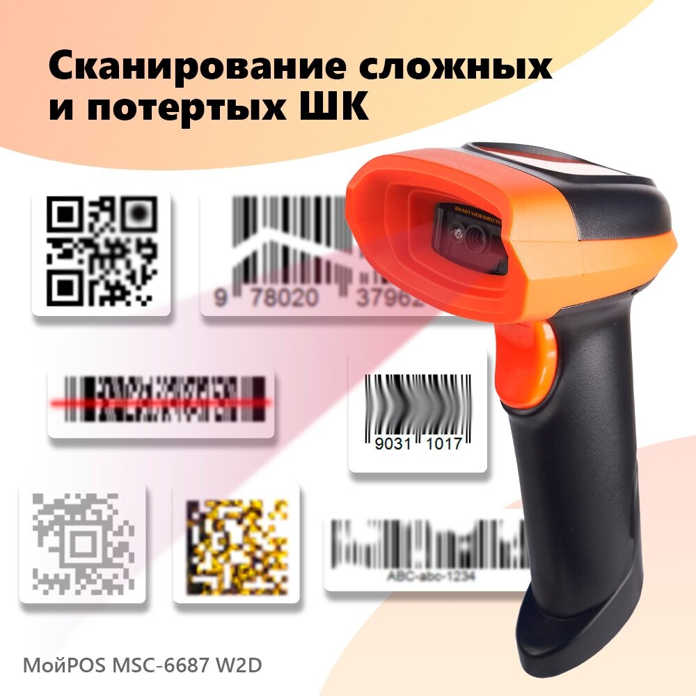 Сканер штрих кода беспроводной МойPOS MSC-6687W 2D для маркировки и ЕГАИС USB интересное: