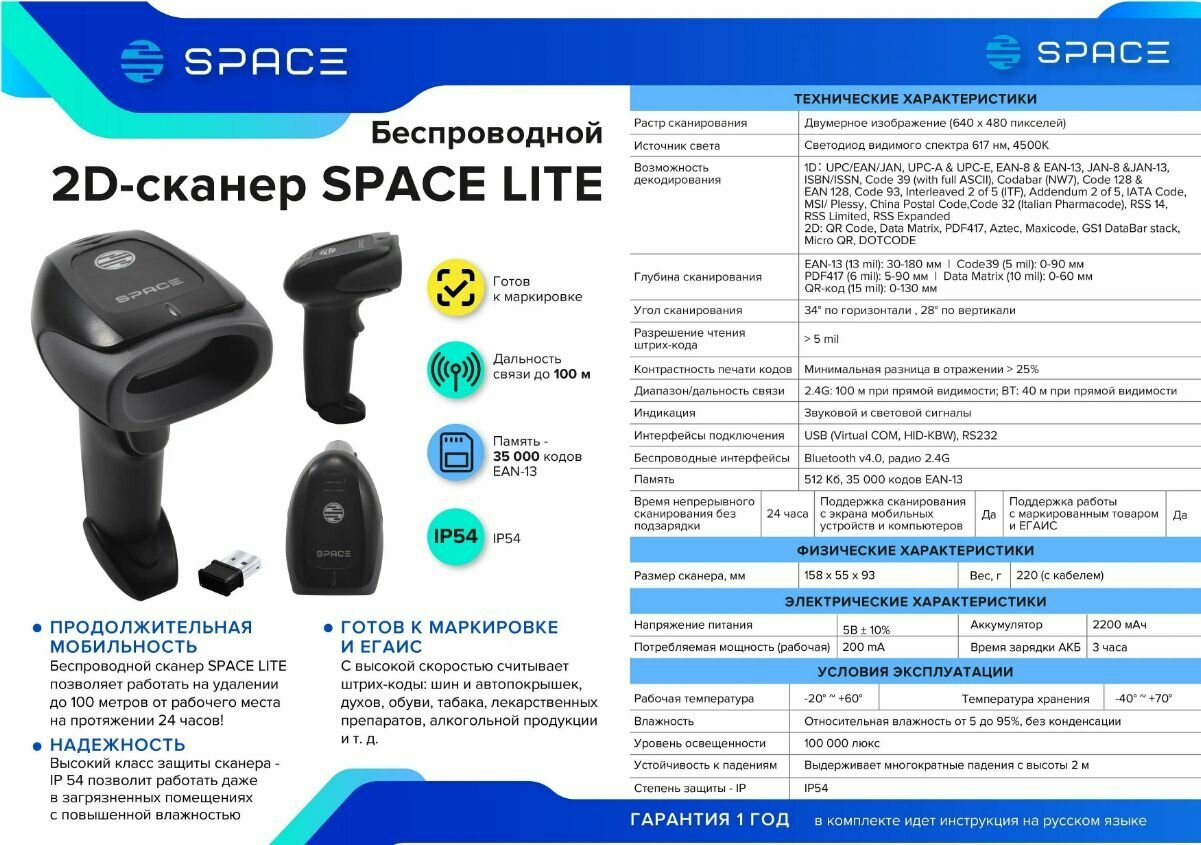 Сканер 2D Space X-Lite . Проводной интересное: