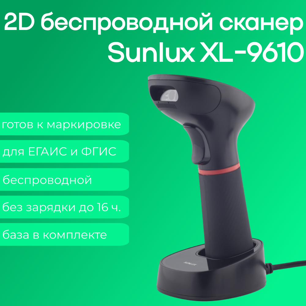 Купить Ручной беспроводной 2D-сканер Sunlux XL-9610 (сканер + кредл + USB-провод)