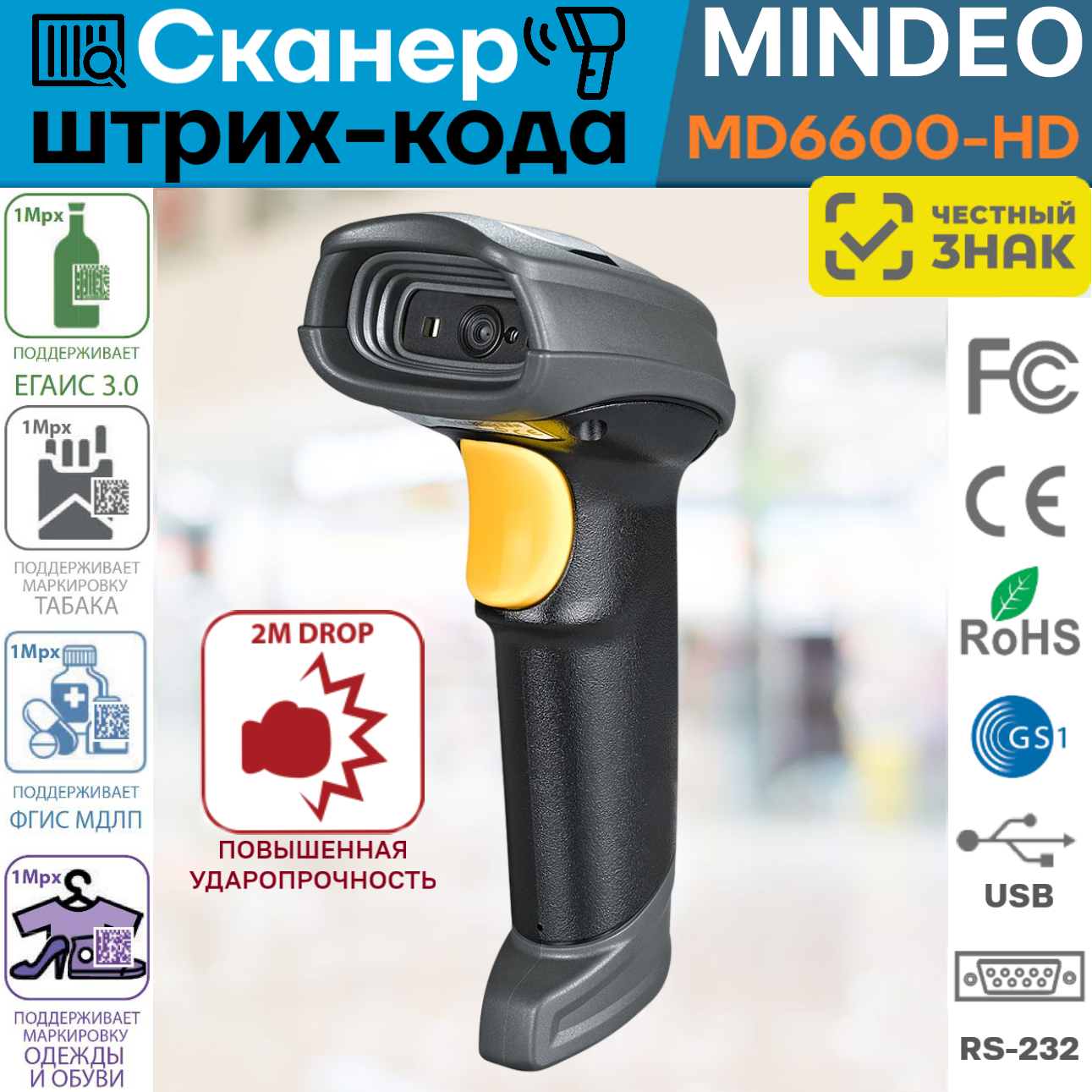 Mindeo Сканер штрих-кода Mindeo MD6600-HD 2D интересное: