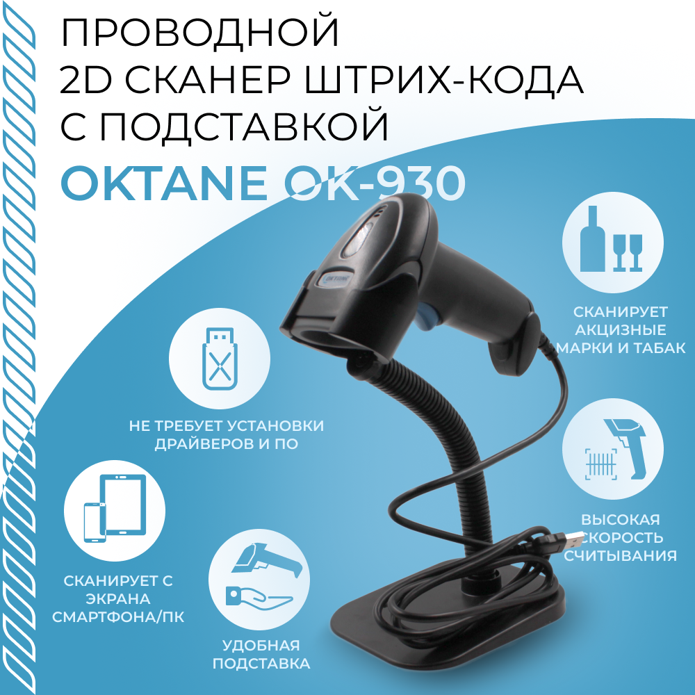 Сканер штрих кода 2D OKTANE ОК-930 с подставкой интересное: