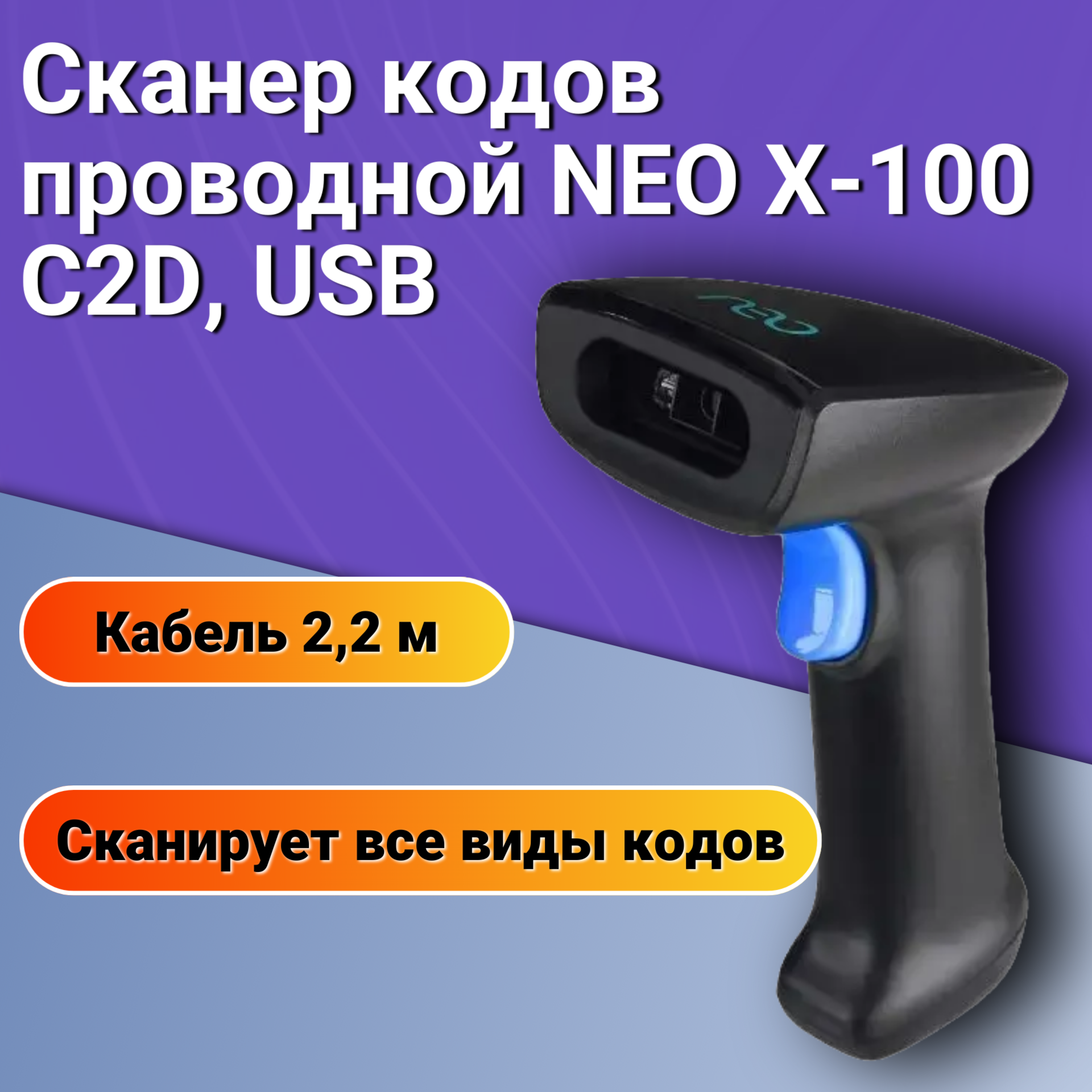 Проводной двумерный сканер NEO X-100 C2D, USB, Black, без подставки интересное: