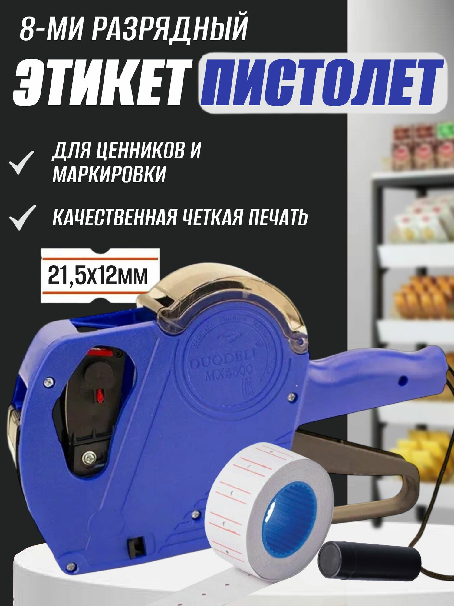 Этикет-пистолет 1-строчный (цифры, знаки), 8 символов, 21 х 12 мм, прямоугольный