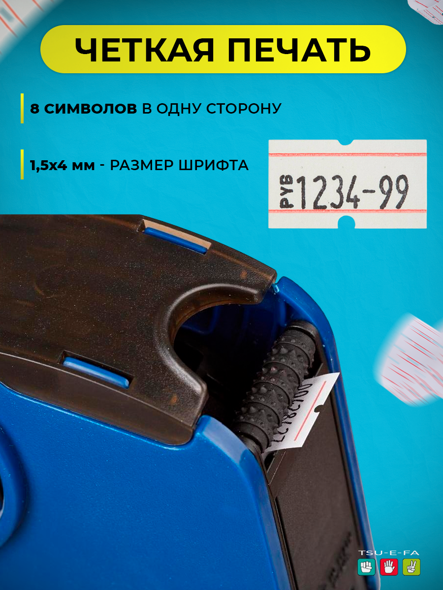 Этикет-пистолет 1-строчный (цифры, знаки), 8 символов, 21 х 12 мм, прямоугольный
