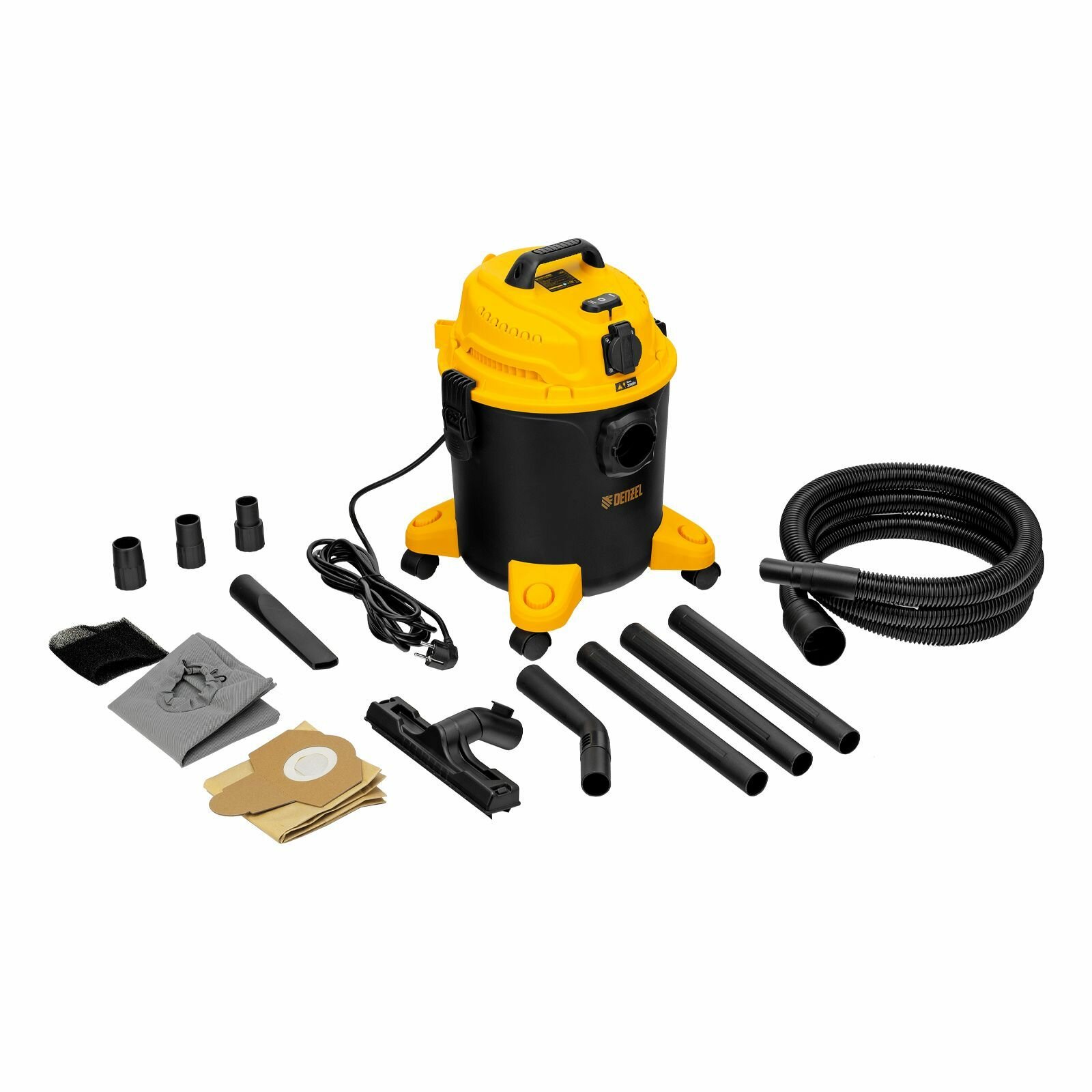 Купить Пылесос строительный LVC20, 1400 Вт, бак 20 л, шланг 3 м, розетка с автосинхр. Denzel