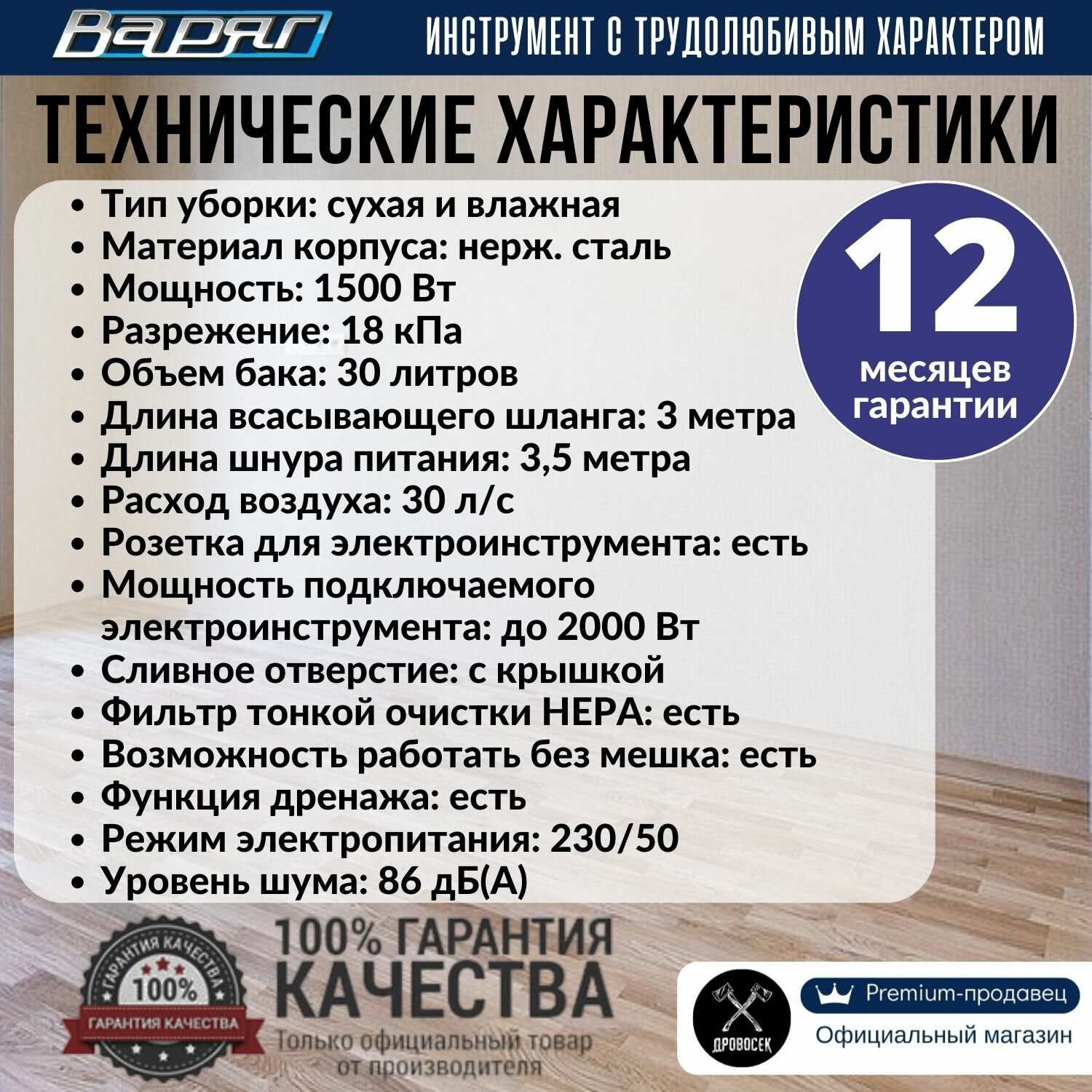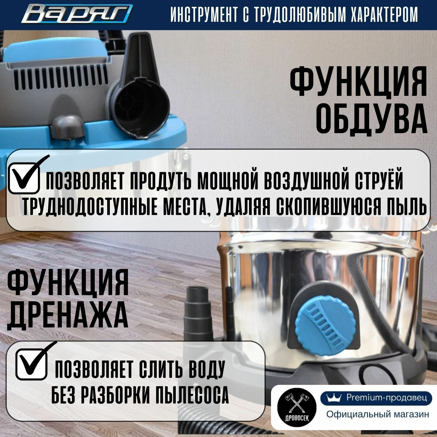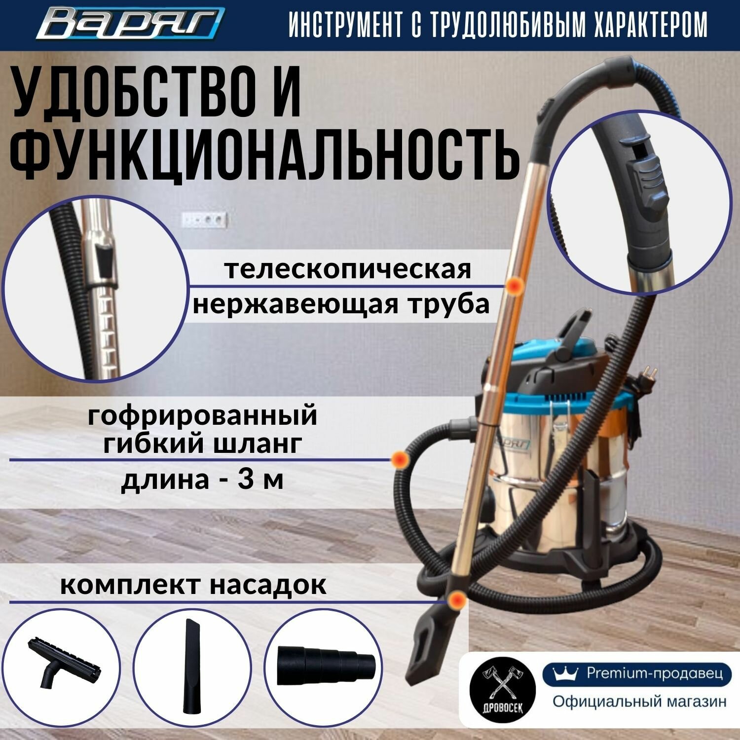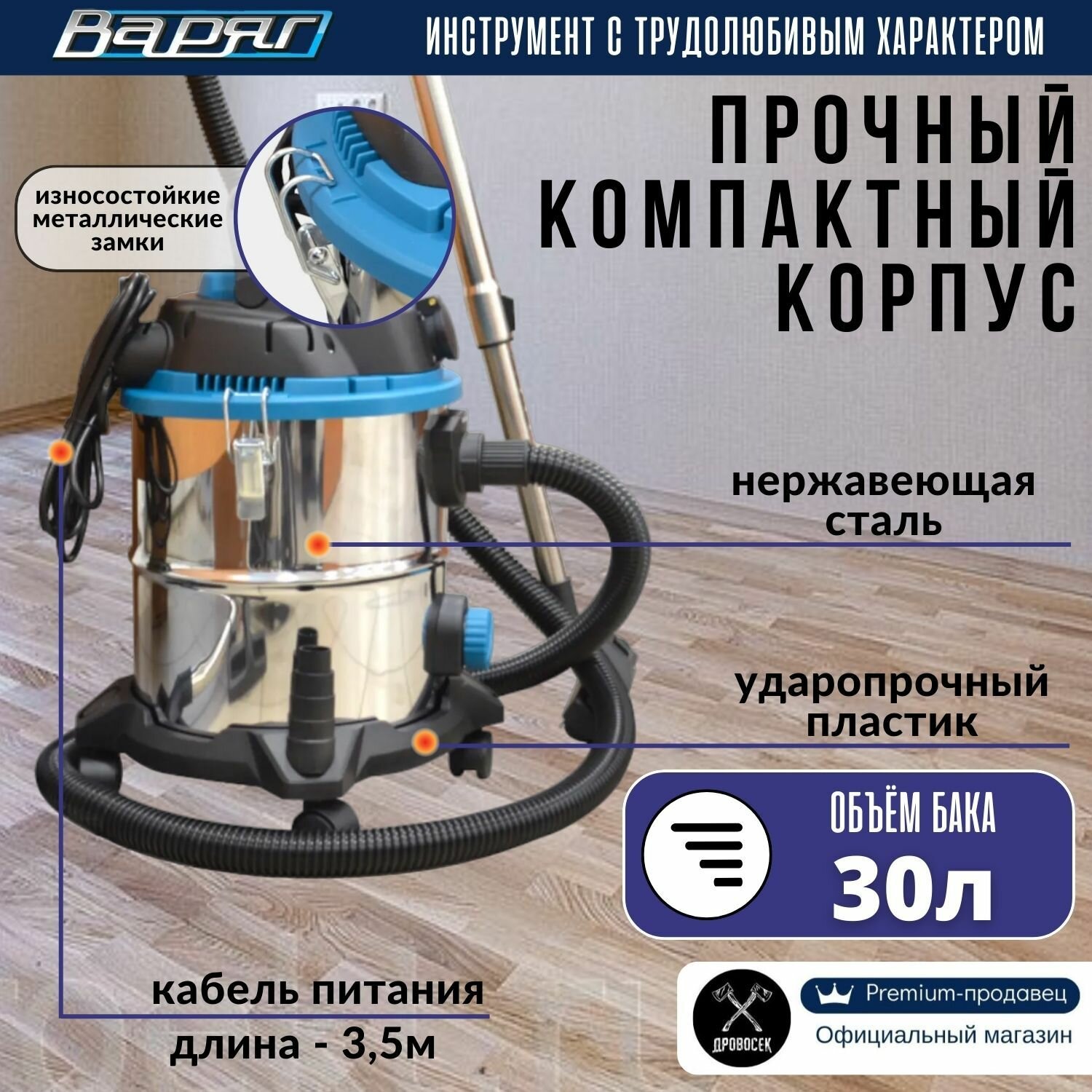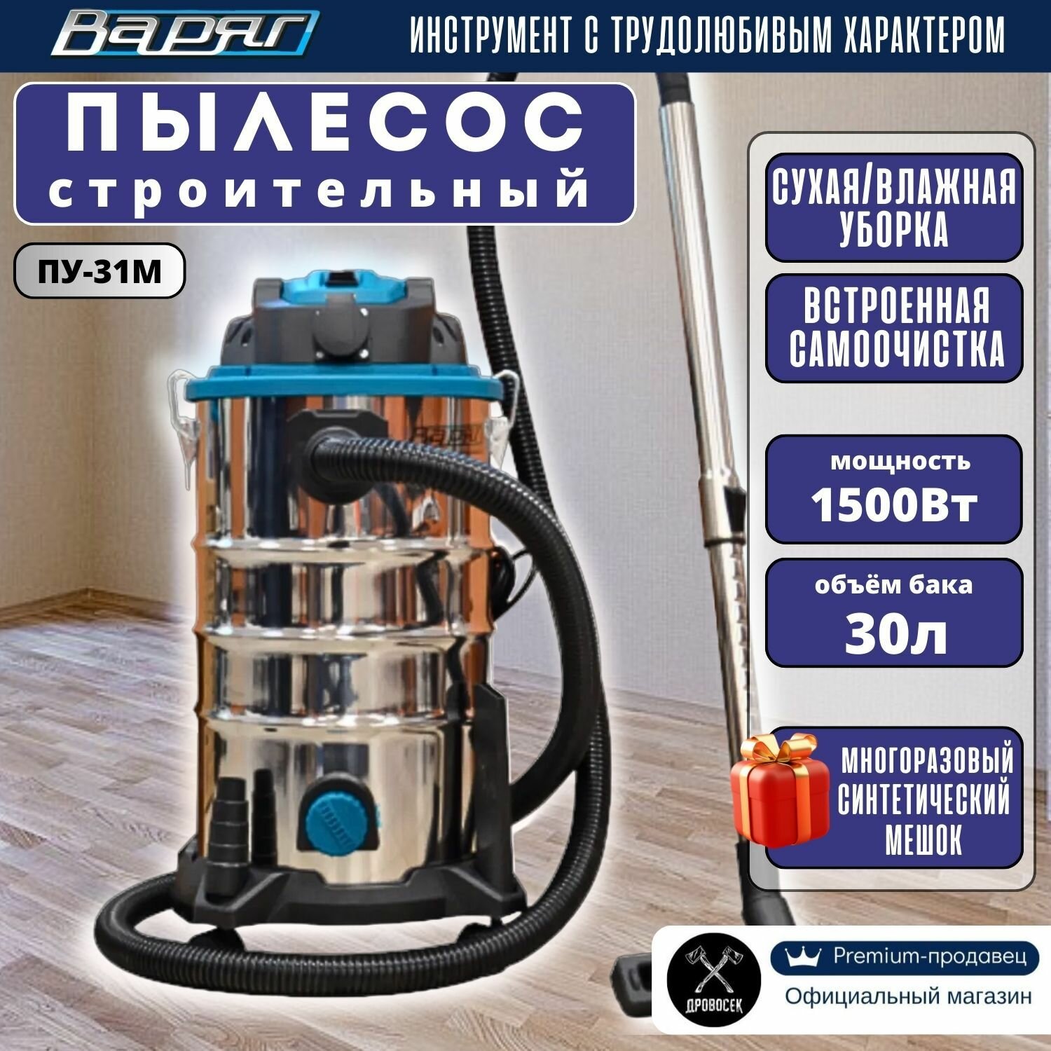 Пылесос строительный Варяг ПУ-31М с розеткой (1500 Вт, 30 л, металл) / промышленный / для электроинструмента / технический интересное: