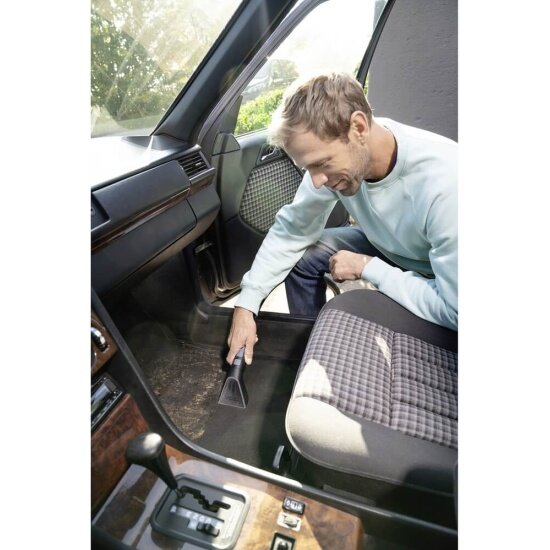 | Дополнительная информация | Тщательная уборка с максимальной свободой движений: моющий пылесос SE 3-18 Compact очищает текстильную обивку на всю глубину ворса, удаляя из него все загрязнения. Аппарат имеет компактную конструкцию и благодаря питанию от аккумулятора Kärcher Battery Power 18 В (не входит в комплект поставки) может использоваться в местах, где нет возможности подключиться электросети. Для уборки с его помощью в автомобиле достаточно 12 – 24 минут. За это время можно полностью очистить сиденья, коврики, а также и багажник. Аппарат, не уступающий в производительности сетевым моющим пылесосам, прекрасно подходит и для очистки мягкой мебели (в т. ч. садовой). При этом его длинный и эластичный шланг с интегрированной подводкой воды обеспечивает удобную очистку труднодоступных мест. Моющий пылесос впечатляет и гигиенической функцией промывки, позволяющей после уборки удалять из него и шланга остаточные загрязнения, предотвращая тем самым размножение бактерий и образование неприятного запаха. |