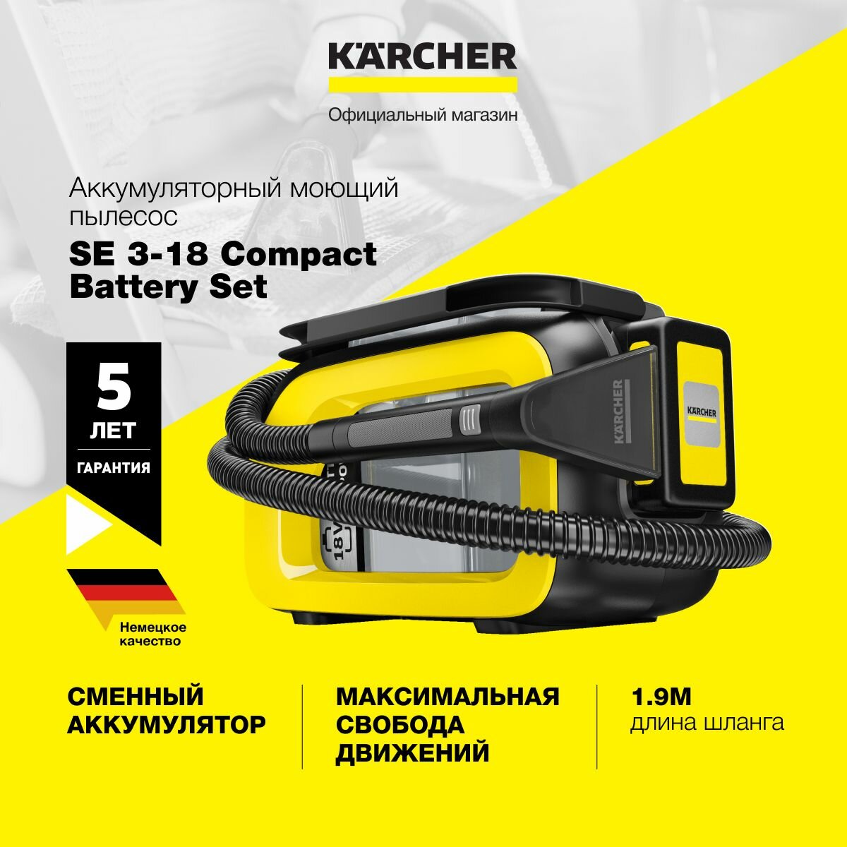 Аккумуляторный моющий пылесос Karcher SE 3-18 Compact Battery Set | 1.081-502.0 интересное: