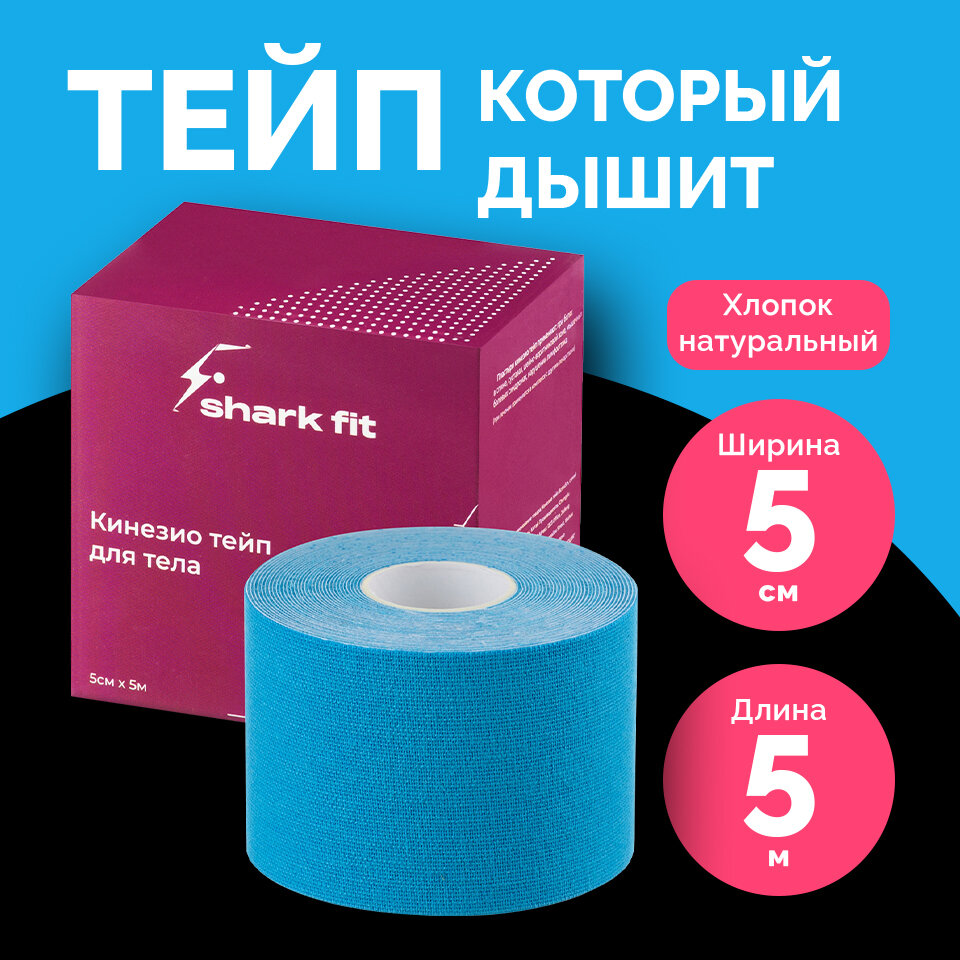 Кинезиотейп, Shark Fit, Тейп лента, тейп для лица и тела, тейп спортивный, 5 см, Голубой интересное: