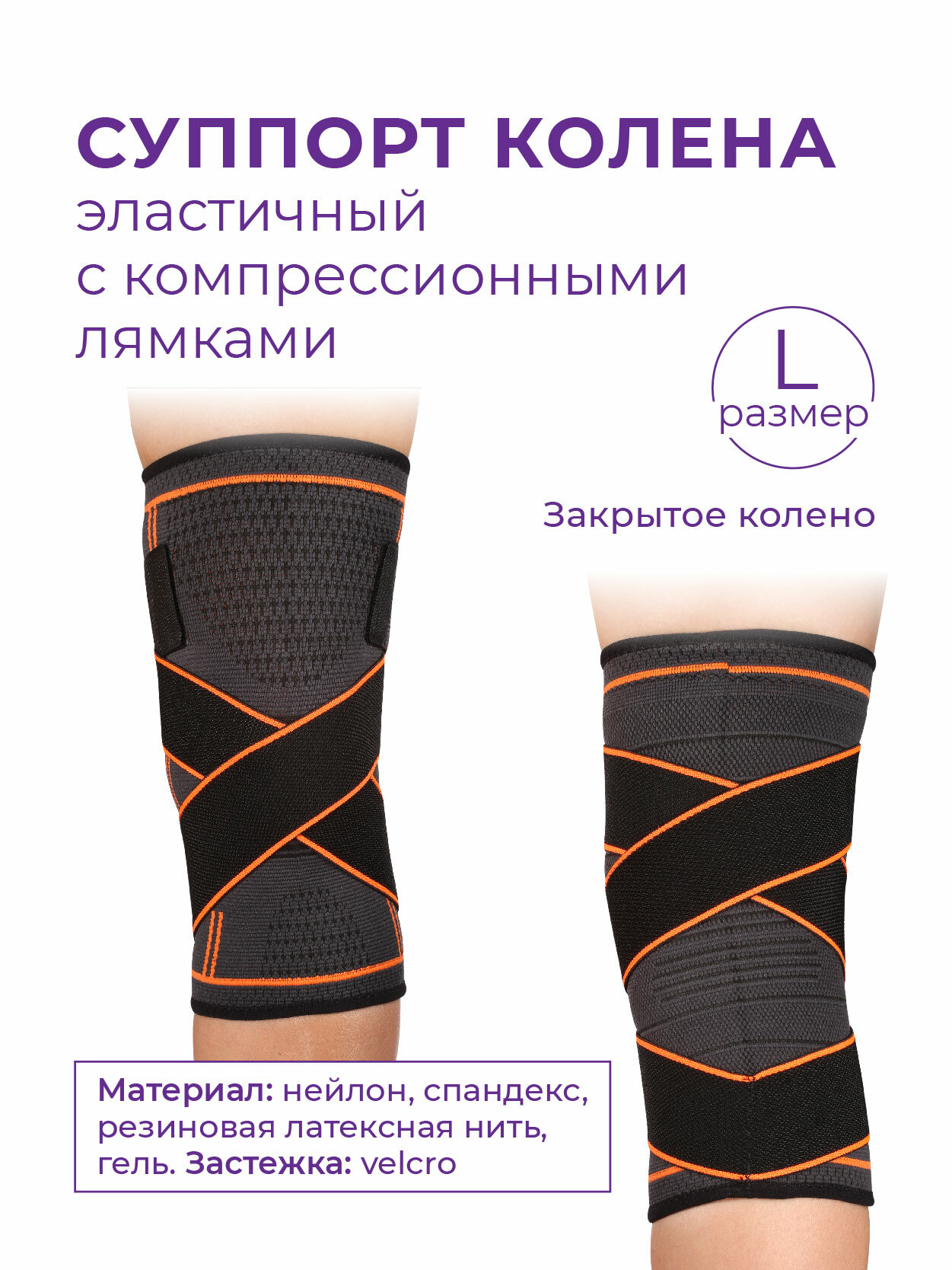 Суппорт колена эластичный INDIGO с компрессионными лямками INDIGO IN209 Черно-оранжевый L интересное: