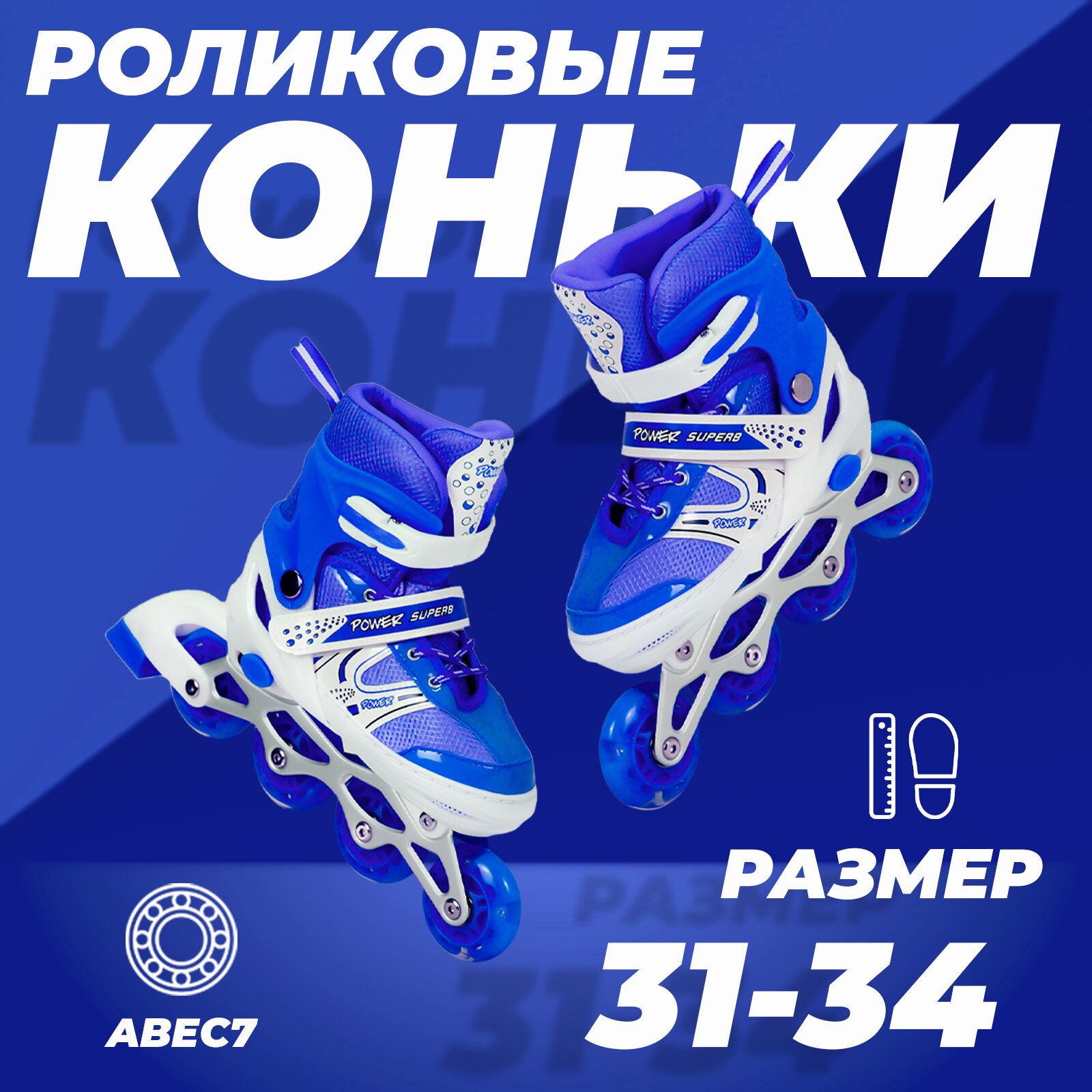 Купить Роликовые коньки раздвижные 31-34, колеса полиуретан, ABEC7, синие
