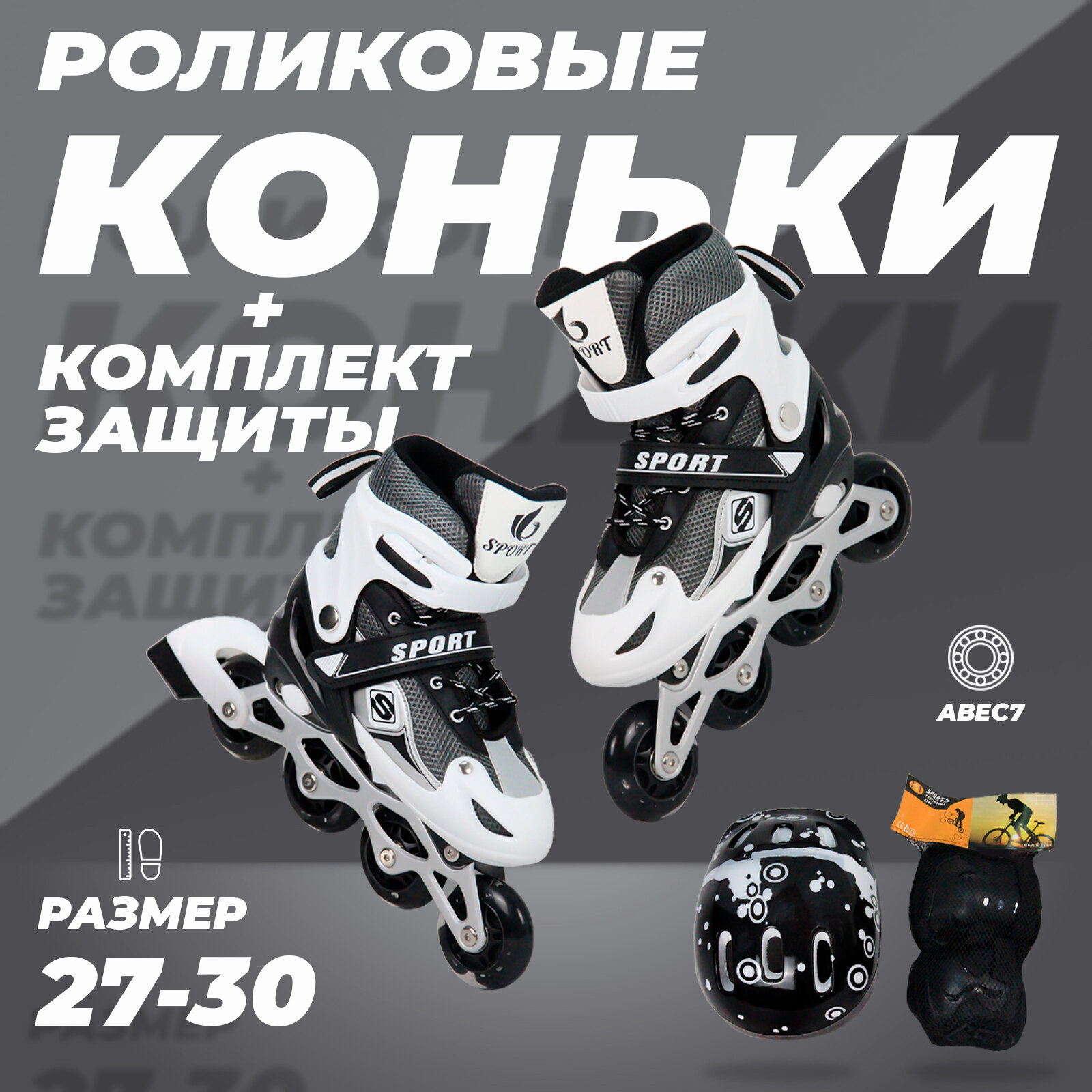 Купить Роликовые коньки раздвижные 27-30, защитный набор в комплекте, ABEC7, черные