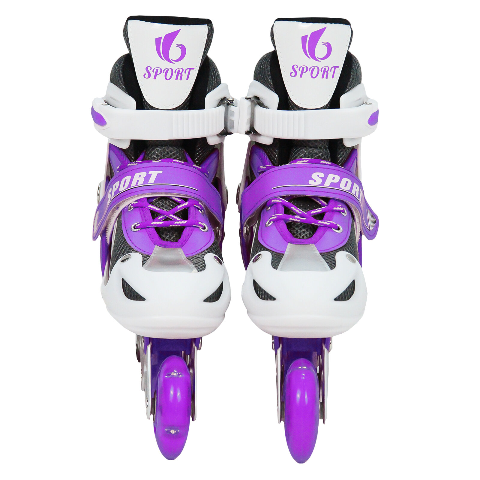 Роликовые коньки раздвижные 35-38, защитный набор в комплекте, ABEC7, фиолетовые