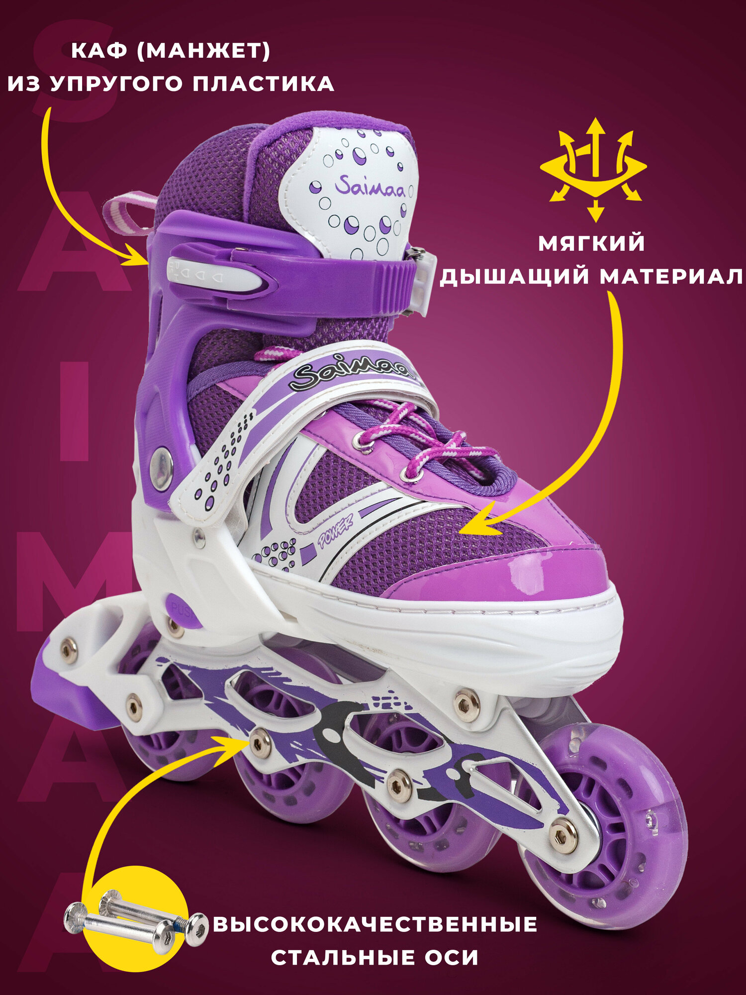 Ролики раздвижные детские, М (35-38) цвет фиолетовый, комплект защиты в наборе