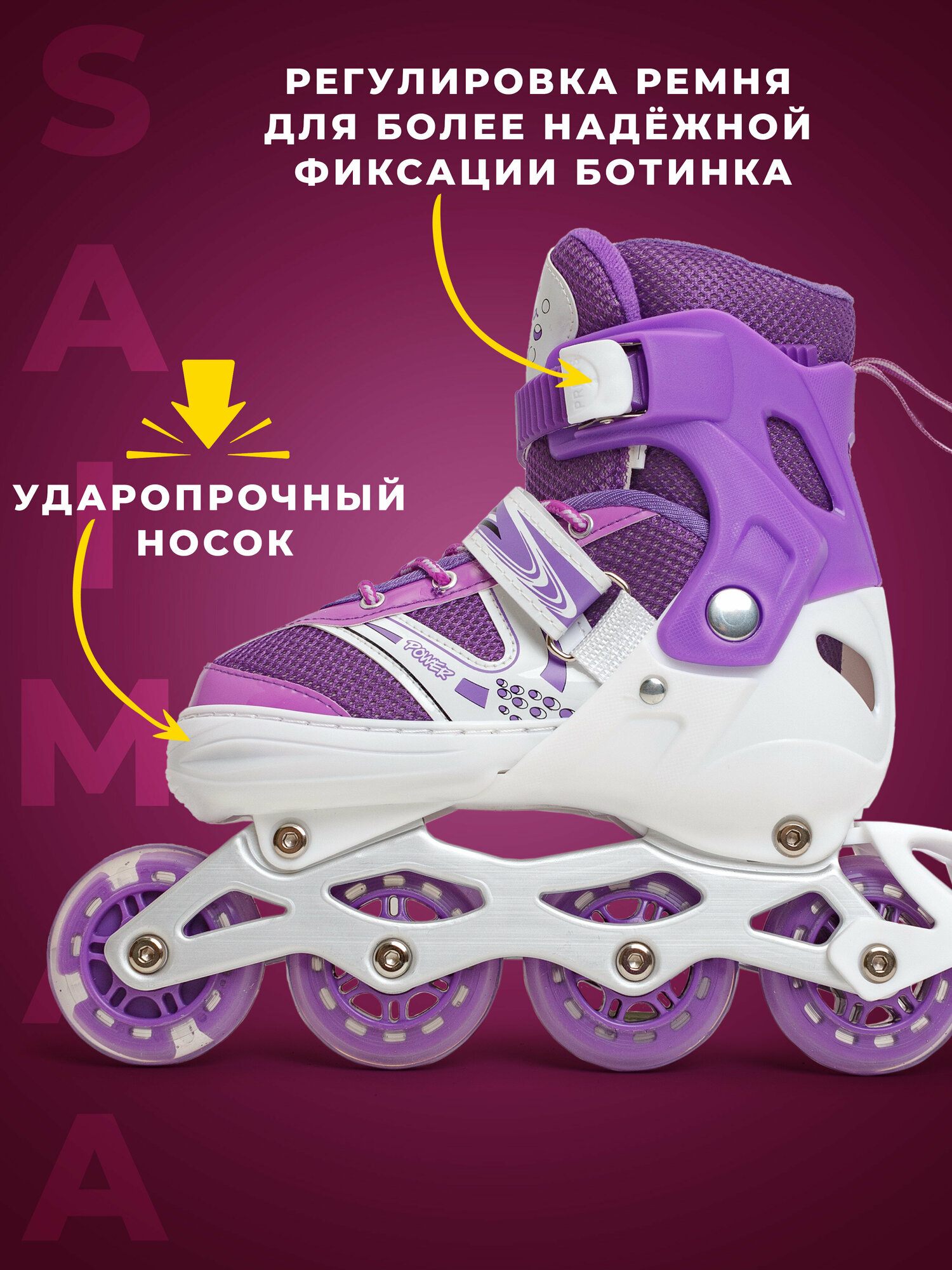 Роликовые коньки раздвижные детские M (35-38) цвет фиолетовый, комплект защиты в наборе