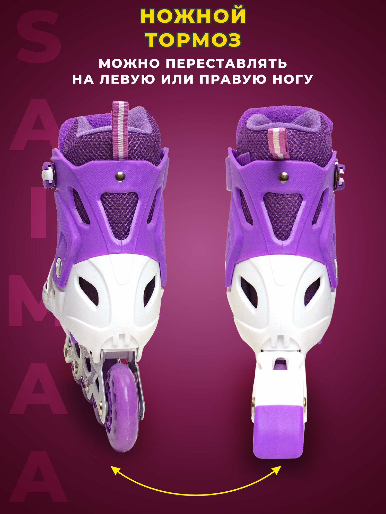 Роликовые коньки раздвижные детские, S (31-34) цвет фиолетовый, комплект защиты в наборе