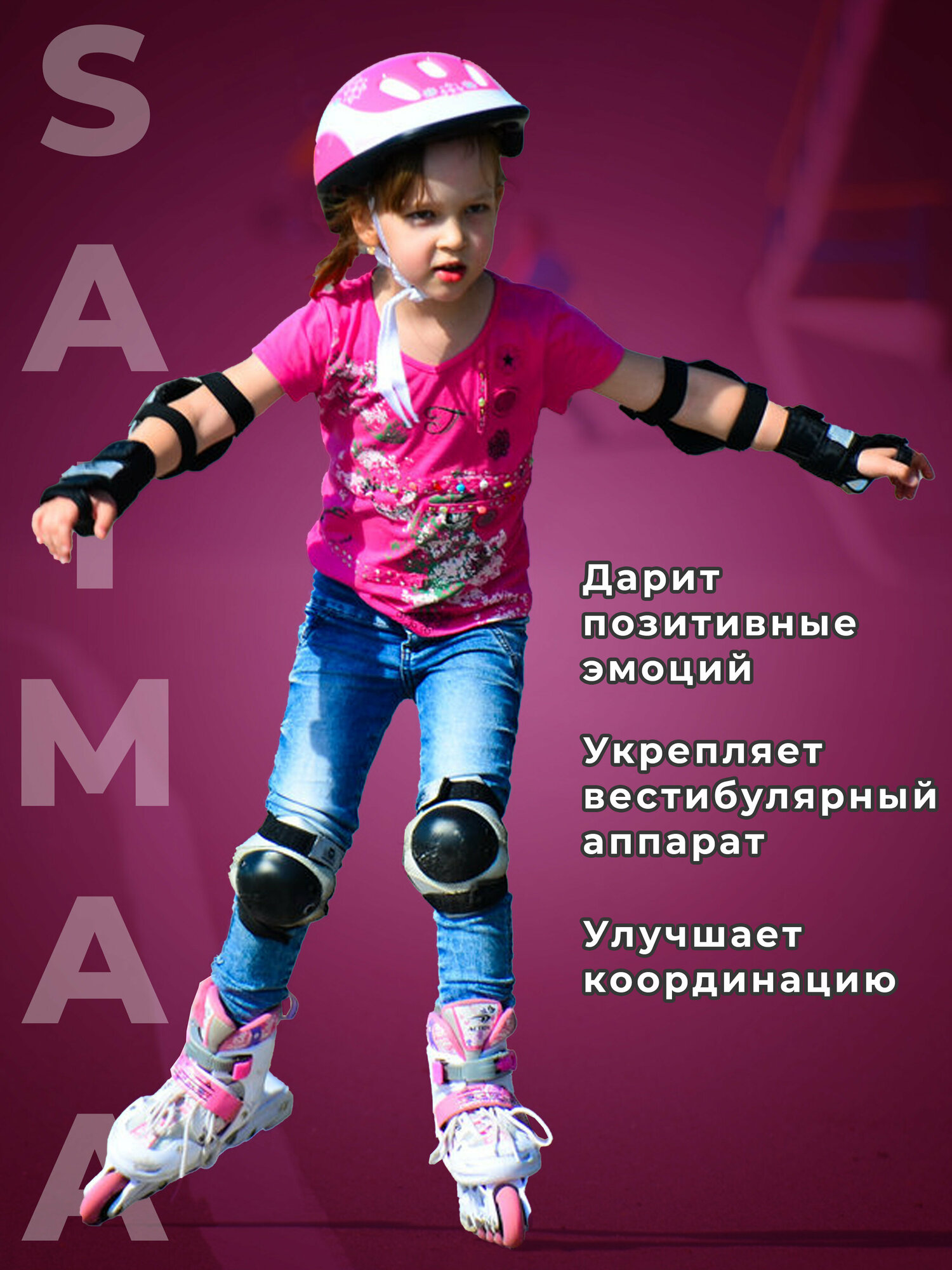 Роликовые коньки раздвижные детские S (31-34) цвет розовый, комплект защиты в наборе