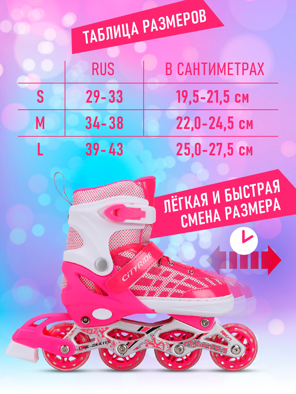 Набор детские роликовые коньки и защита, ТМ "CITY-RIDE", PVC колеса, размер M (34-38), раздвижные, JB0210514