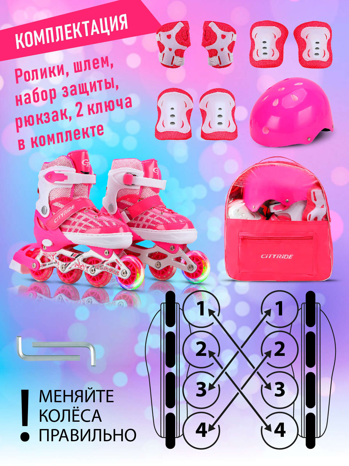Набор детские роликовые коньки и защита, ТМ "CITY-RIDE", PVC колеса, размер S (29-33), раздвижные, JB0210513 интересное: