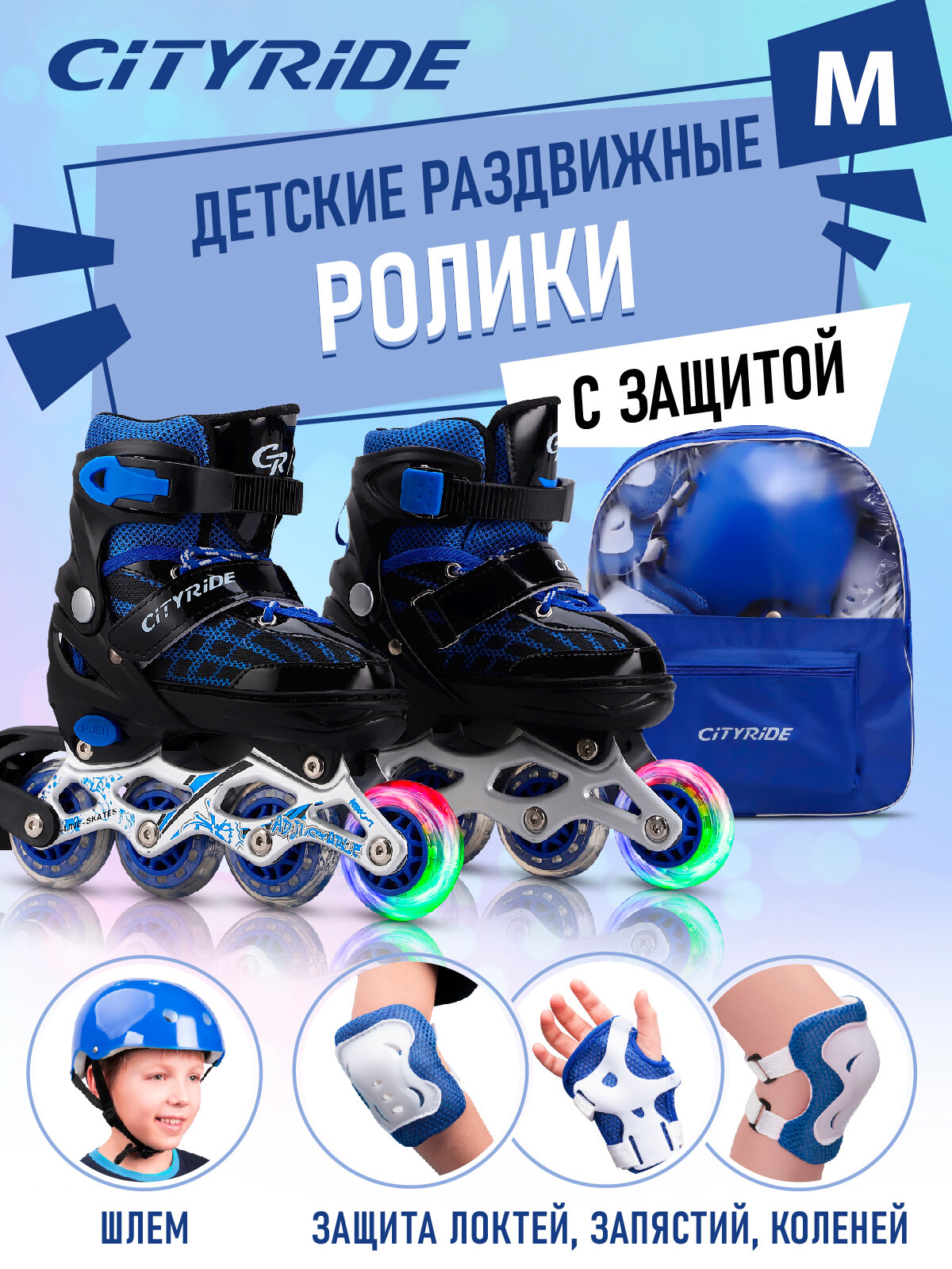 Набор детские роликовые коньки и защита, ТМ "CITY-RIDE", PVC колеса, размер M (34-38), раздвижные, JB0210514