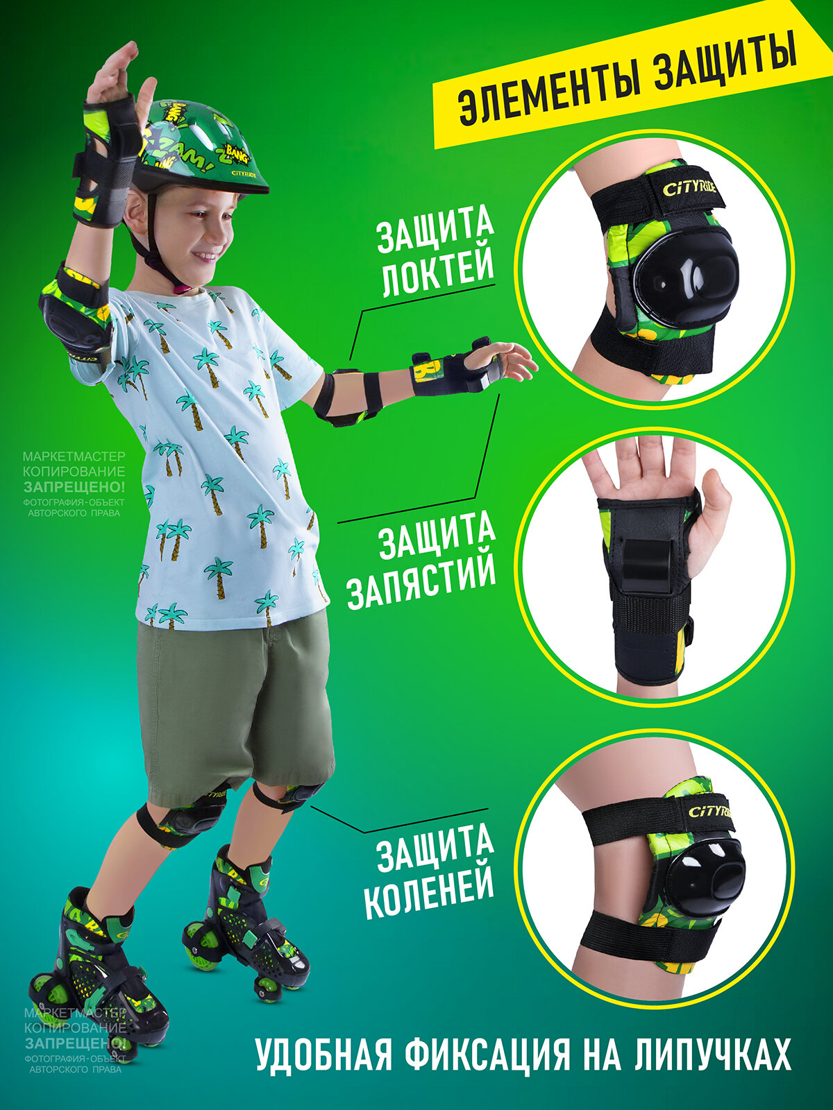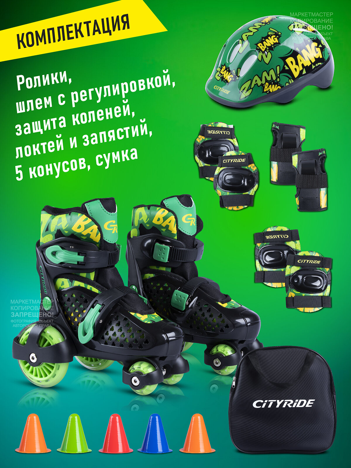 Купить Набор CITYRIDE роликовые коньки-квады, шлем, защита, пластиковый мысок, колёса PU 80/40 мм, JB8800102/S