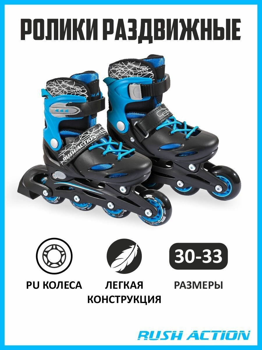 Коньки роликовые пласт рама р.30-33 blue RUSH ACTION интересное: