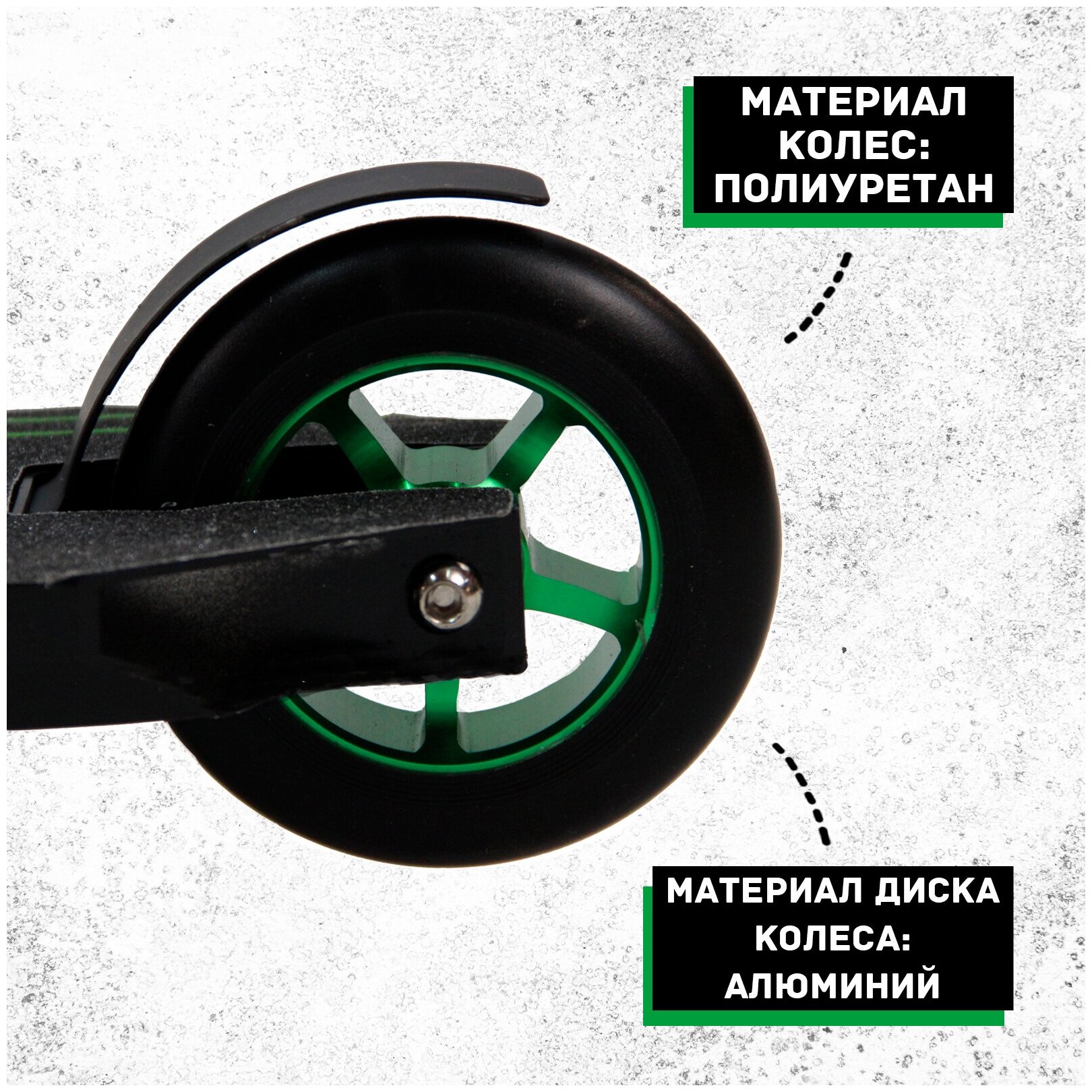 Купить Трюковой самокат "Danger" 110мм зеленый, руль 830мм, дека 500мм х 110мм