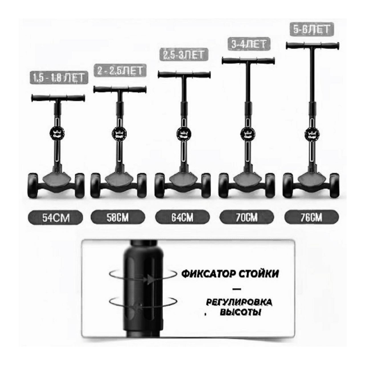 | Конструктивные особенности | регулировка высоты руля / светящиеся колеса / складной |