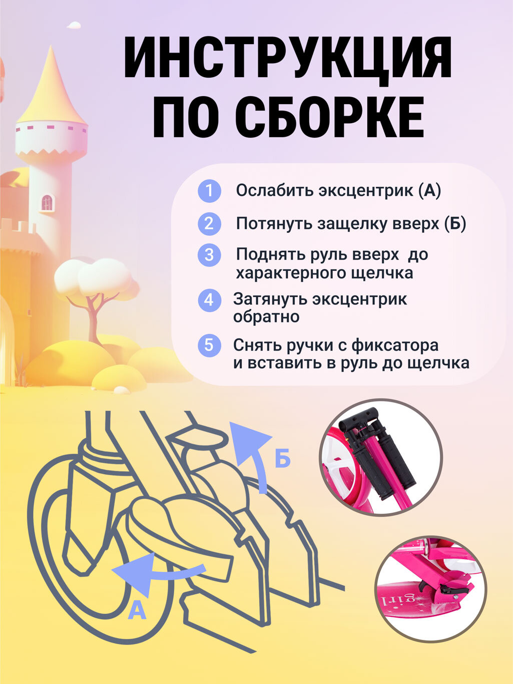 Самокат детский трехколесный COMIRON Yeenot "Зверята", регулируемая складная ручка, светящиеся колеса 110 и 75 мм, нагрузка до 40 кг, розовый / 1 шт.