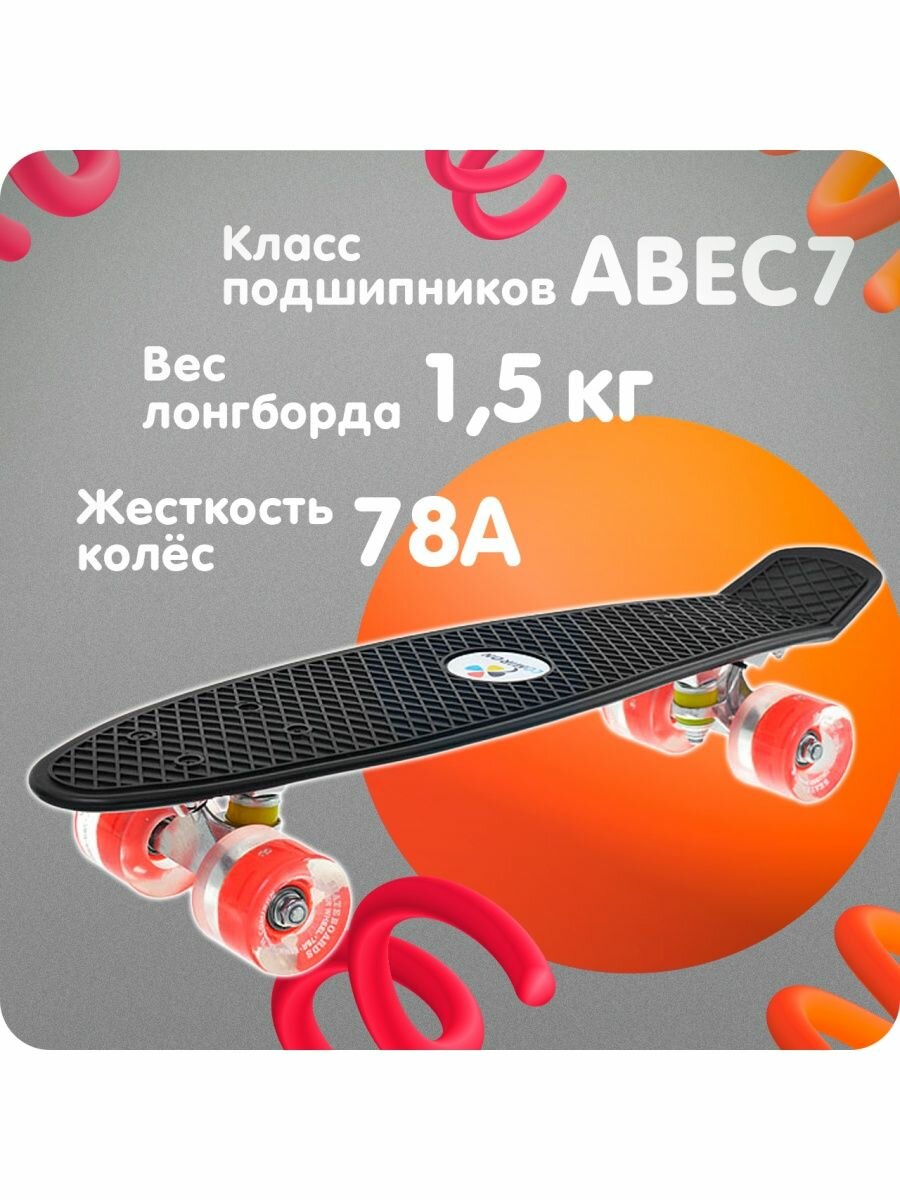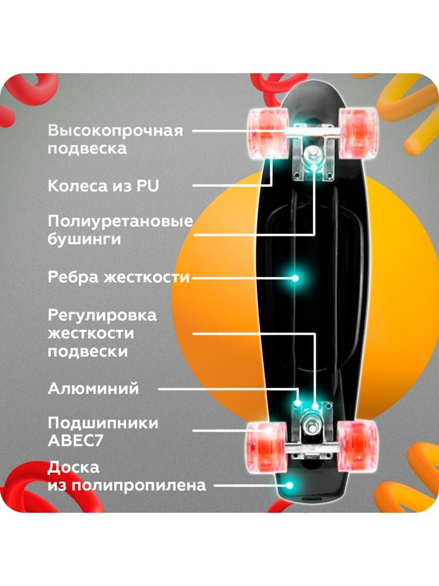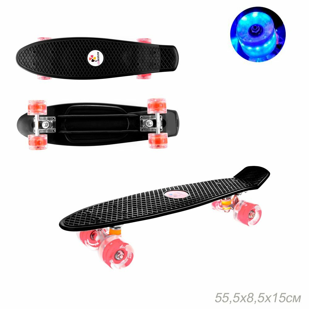 Скейтборд пенни борд доска круизер для детей черный светятся колеса интересное: