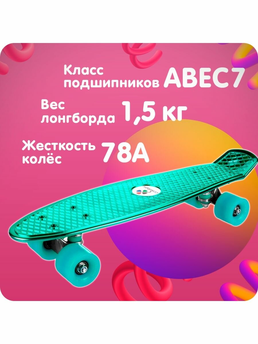 Скейтборд лонгборд детский бирюзовый металлик интересное:
