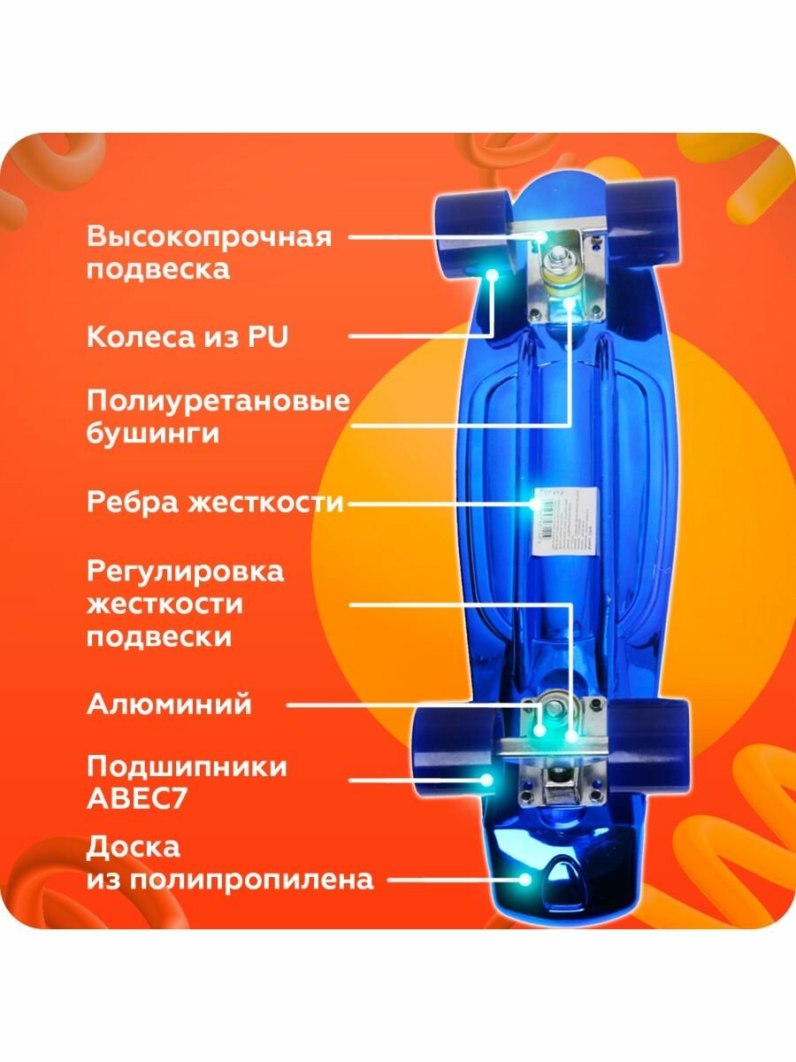Скейтборд лонгборд детский синий металлик интересное: