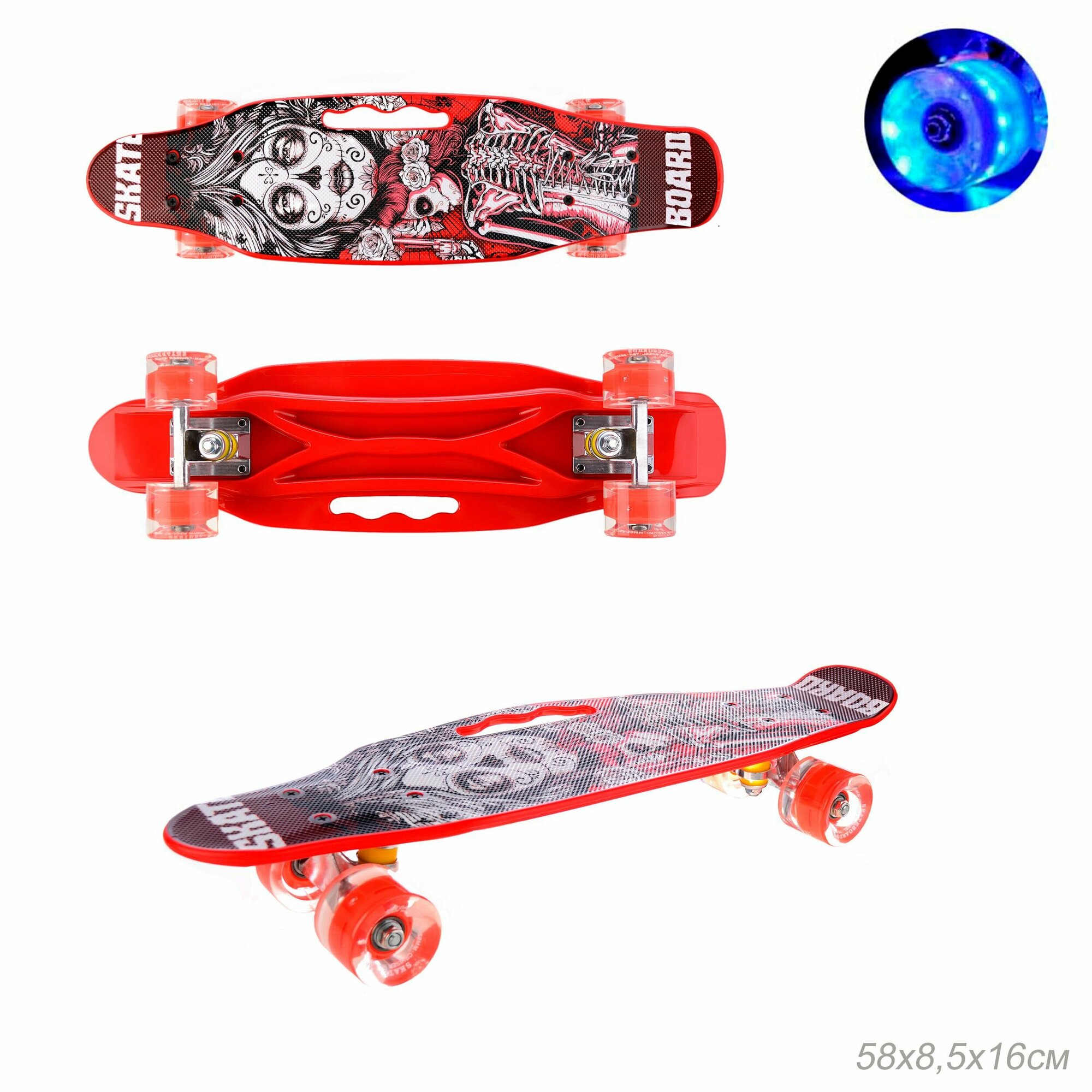 Скейтборд пенни борд доска круизер для детей черный светятся колеса