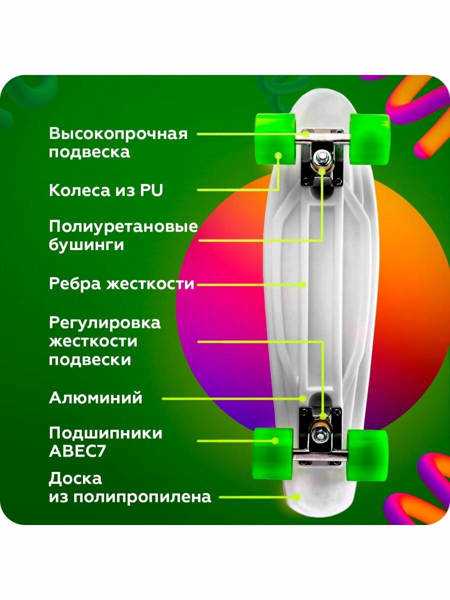 Скейтборд пенни борд доска круизер для детей с полиуретановыми колесами 58х45 мм интересное: