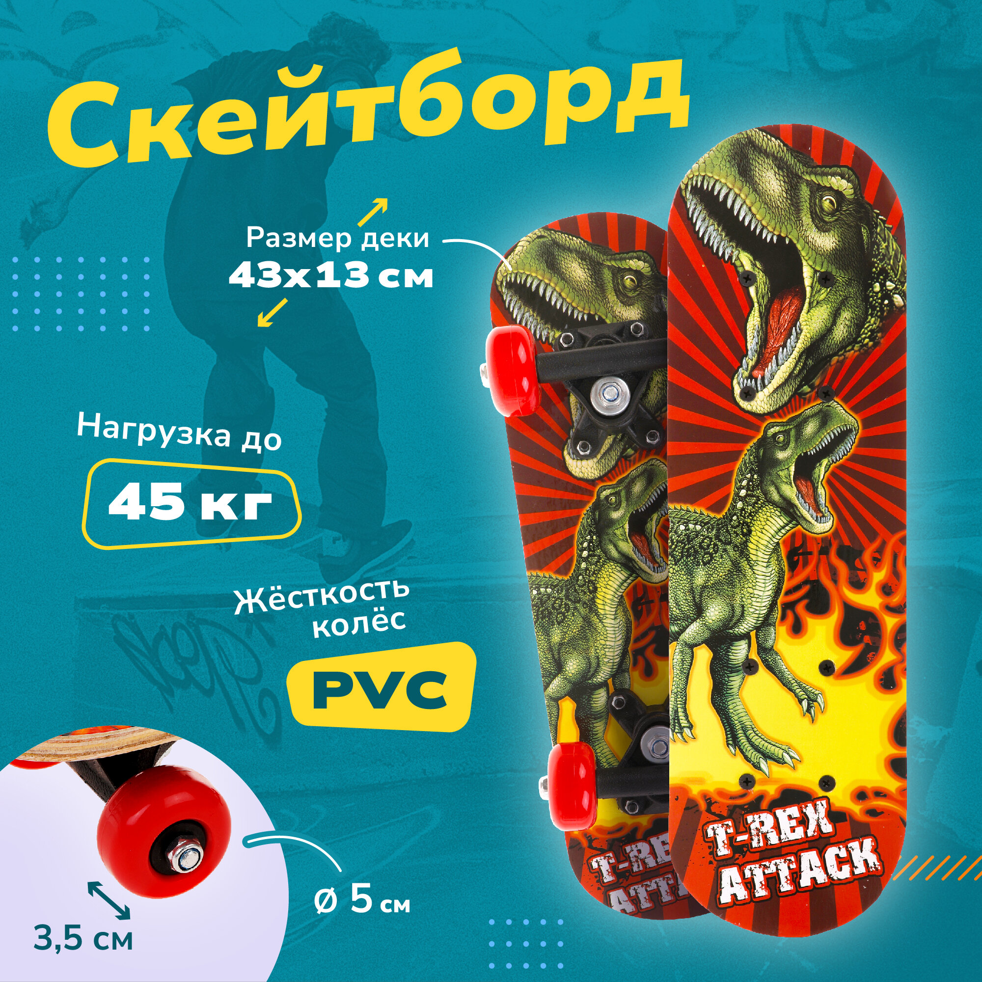 Купить Скейтборд дерев. PVC колеса без света 43*13 см макс. нагрузка до 30 кг., Принт Дино